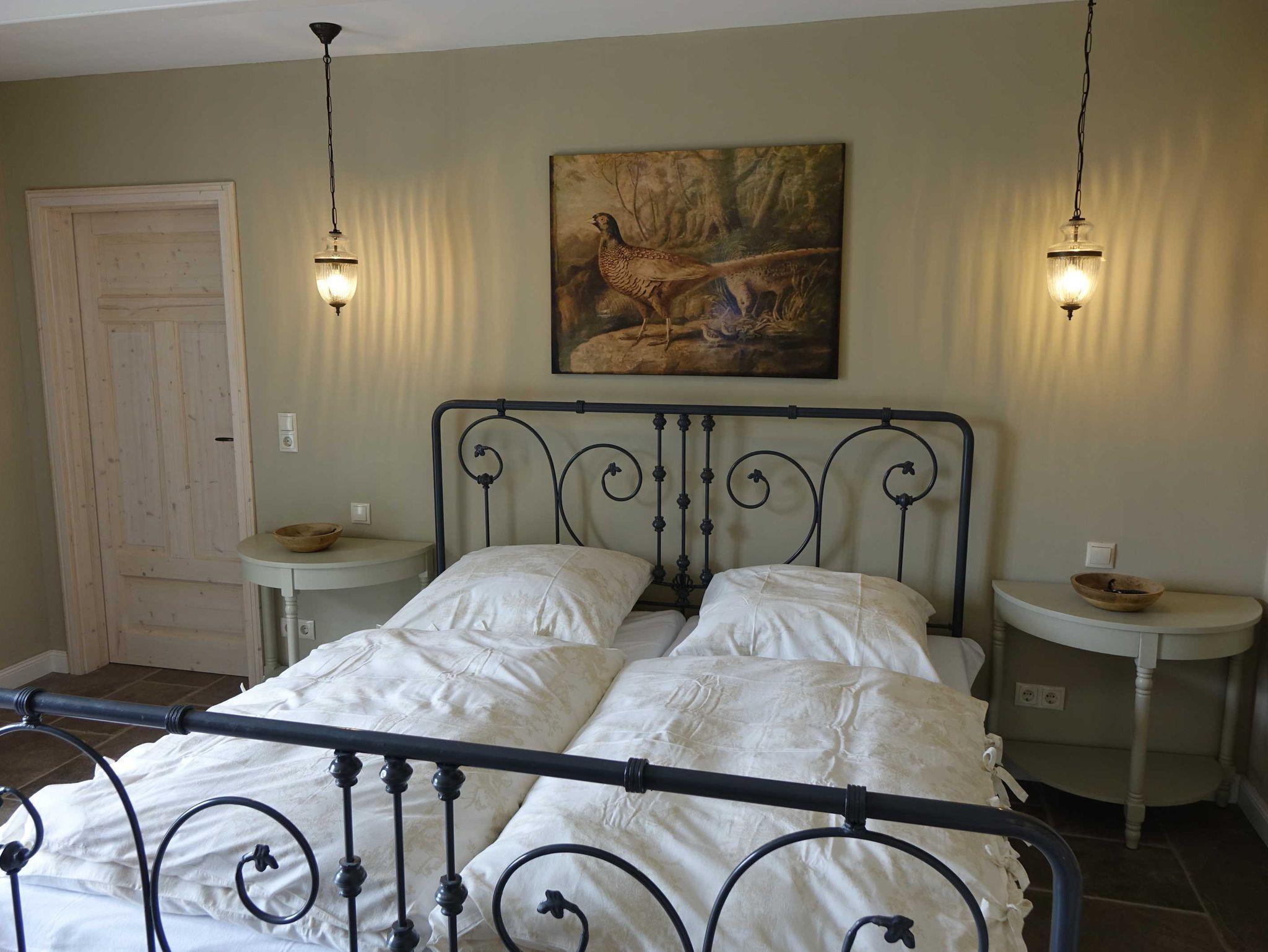 Hochwertig im nostalgischen Landhausstil eingerichtet erwarten die komfortablen Doppelzimmer des B&B Angeliter Landidyll ihre Gäste. Liebevoll bezogene Betten (Doppelbett 180 x 200) und kuschelige Handtücher in den anliegenden Badezimmern sorgen für Wohlbefinden. Für Gepäck und Kleidung sind ausreichend Ablagemöglichkeiten und Stauraum vorhanden. Ein Blick aus dem Fenster auf den großen baumbestandenen Garten und die idyllische Angeliter Landschaft erfreut die Sinne. Beste Voraussetzungen für einen entspannten, erholsamen Schlaf.
