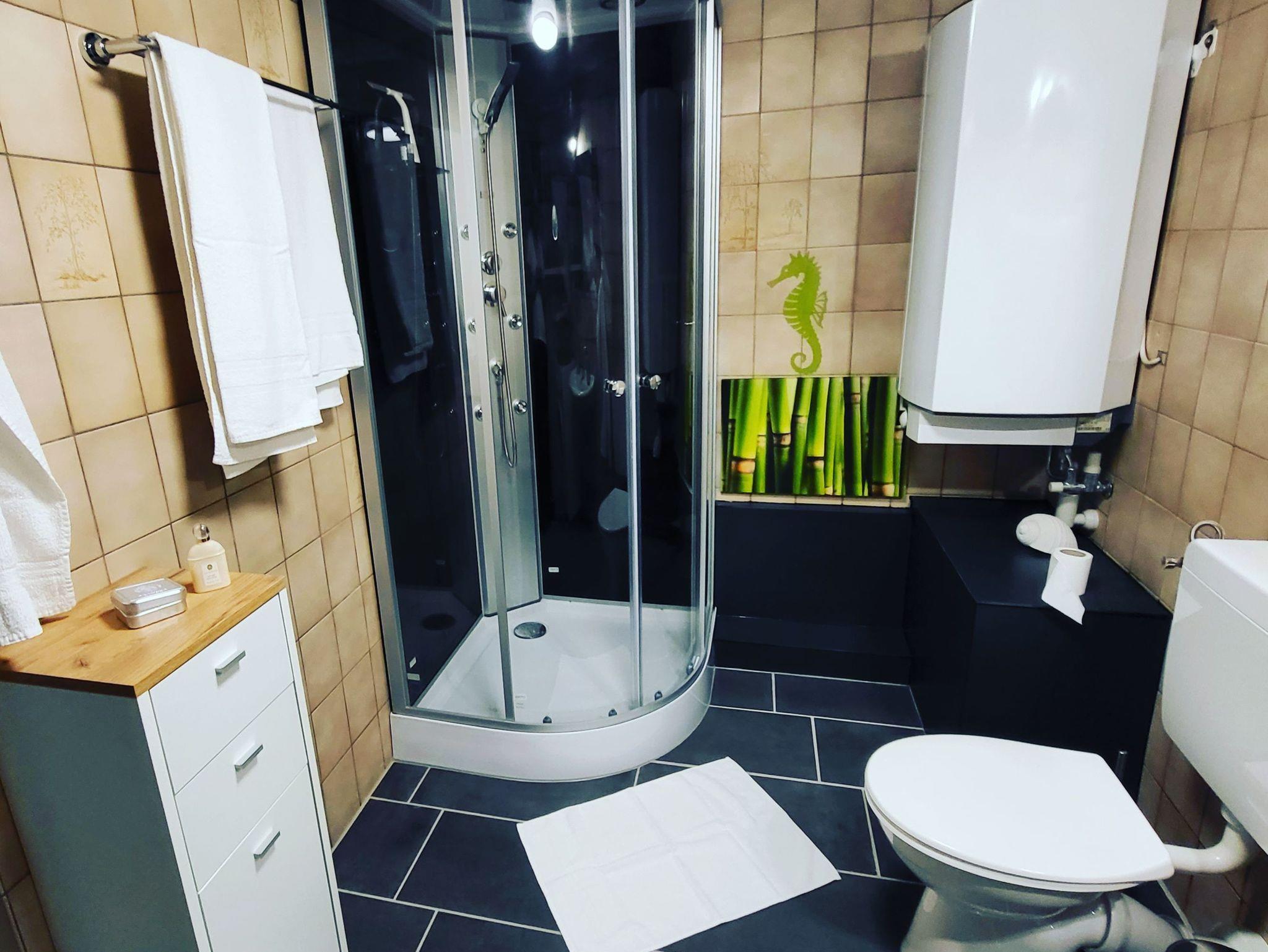 • Badezimmer mit Regendusche (plus Brausekopf) und Waschmaschine; Handtücher zu buchbar
