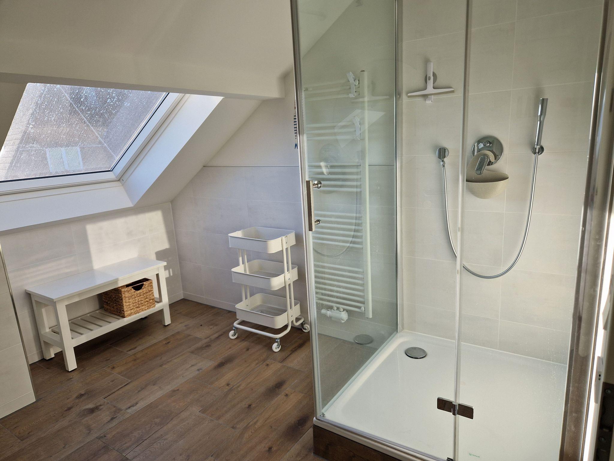 • Badezimmer mit Dusche; Handtücher zu buchbar