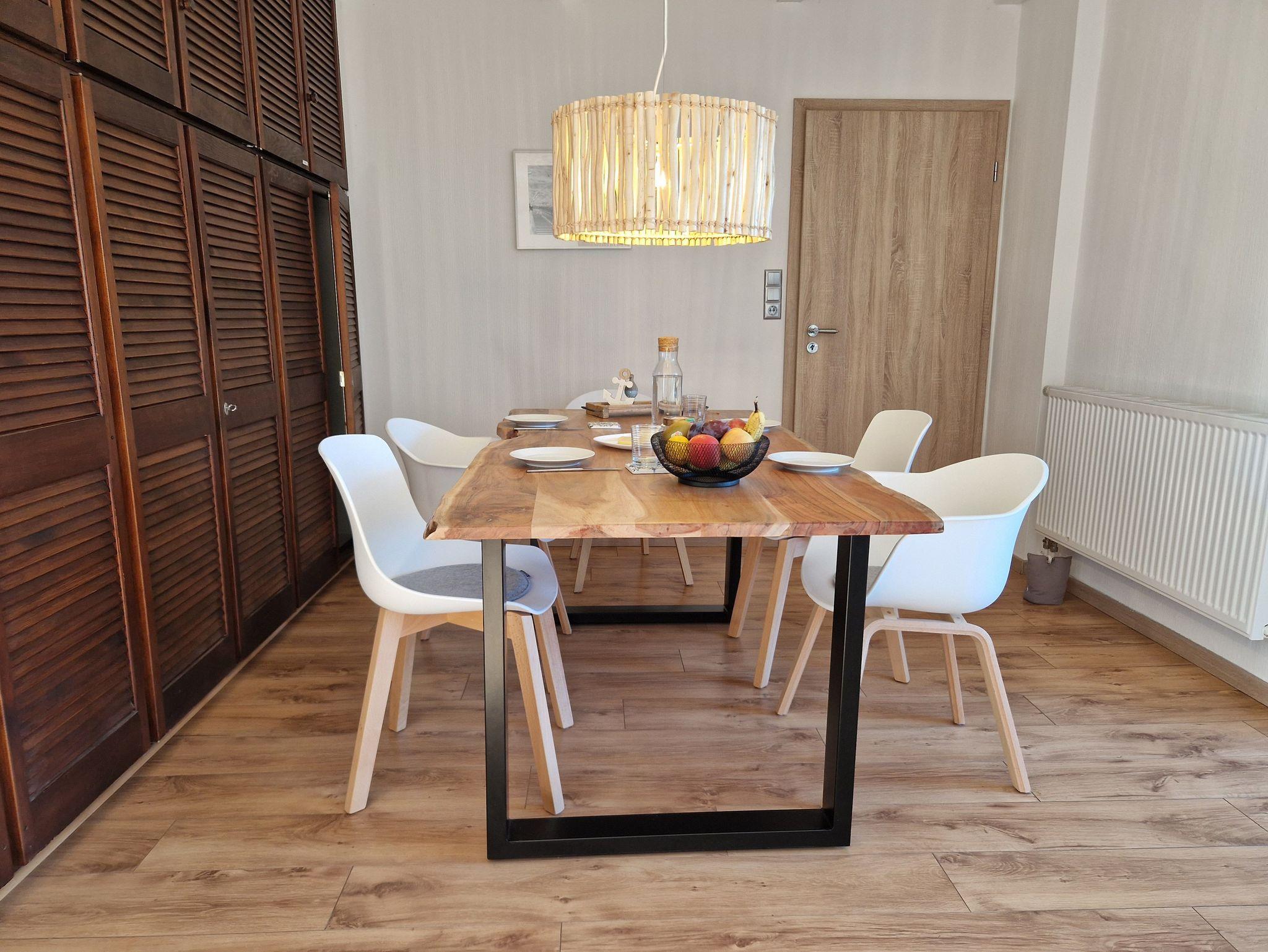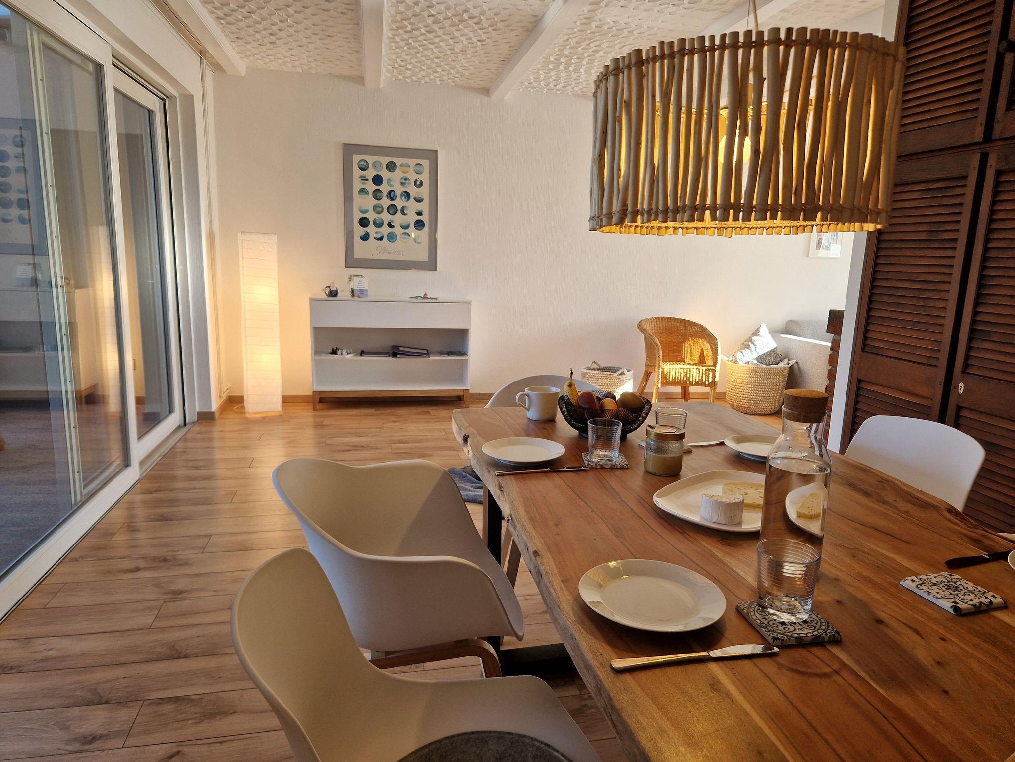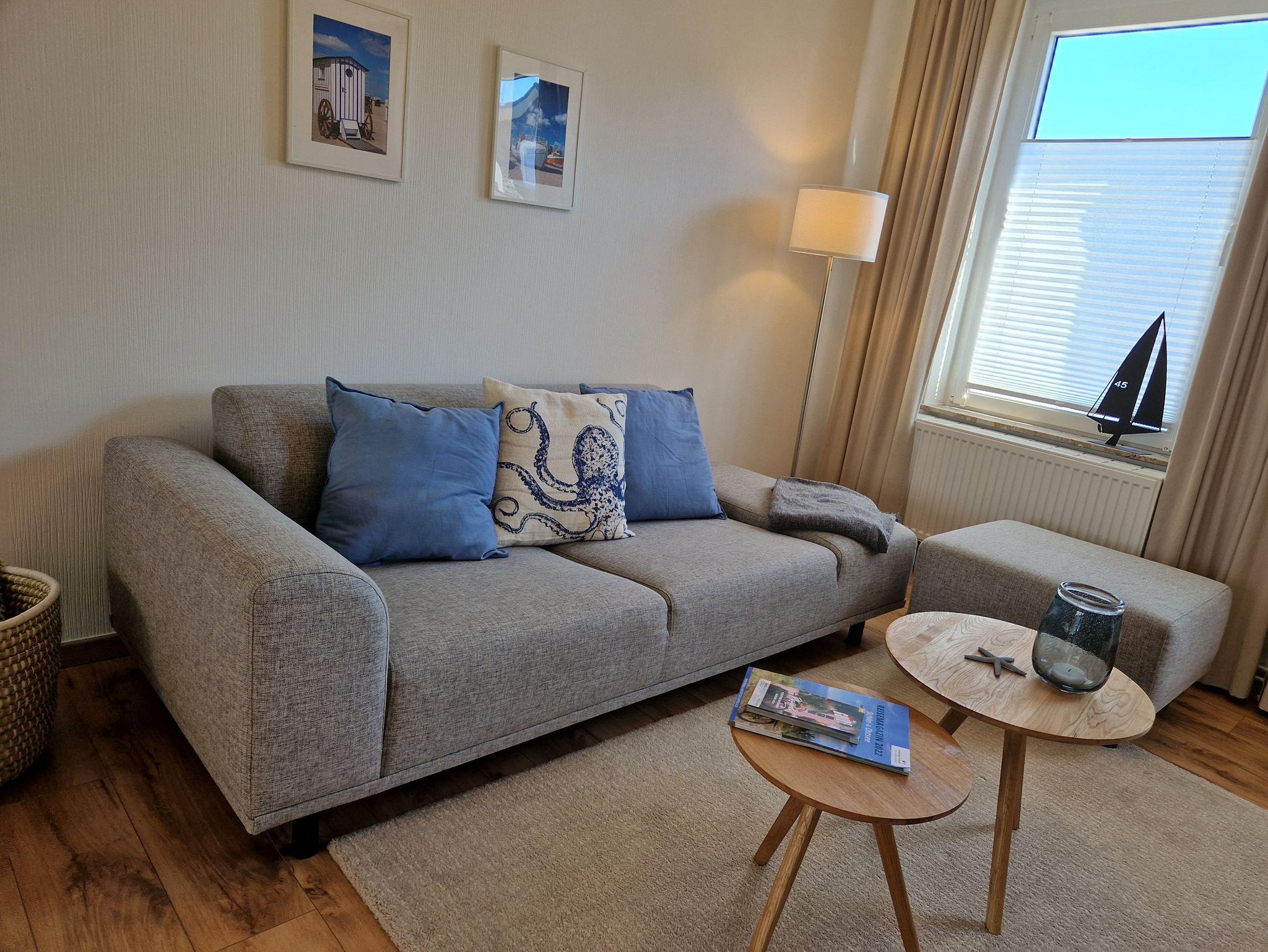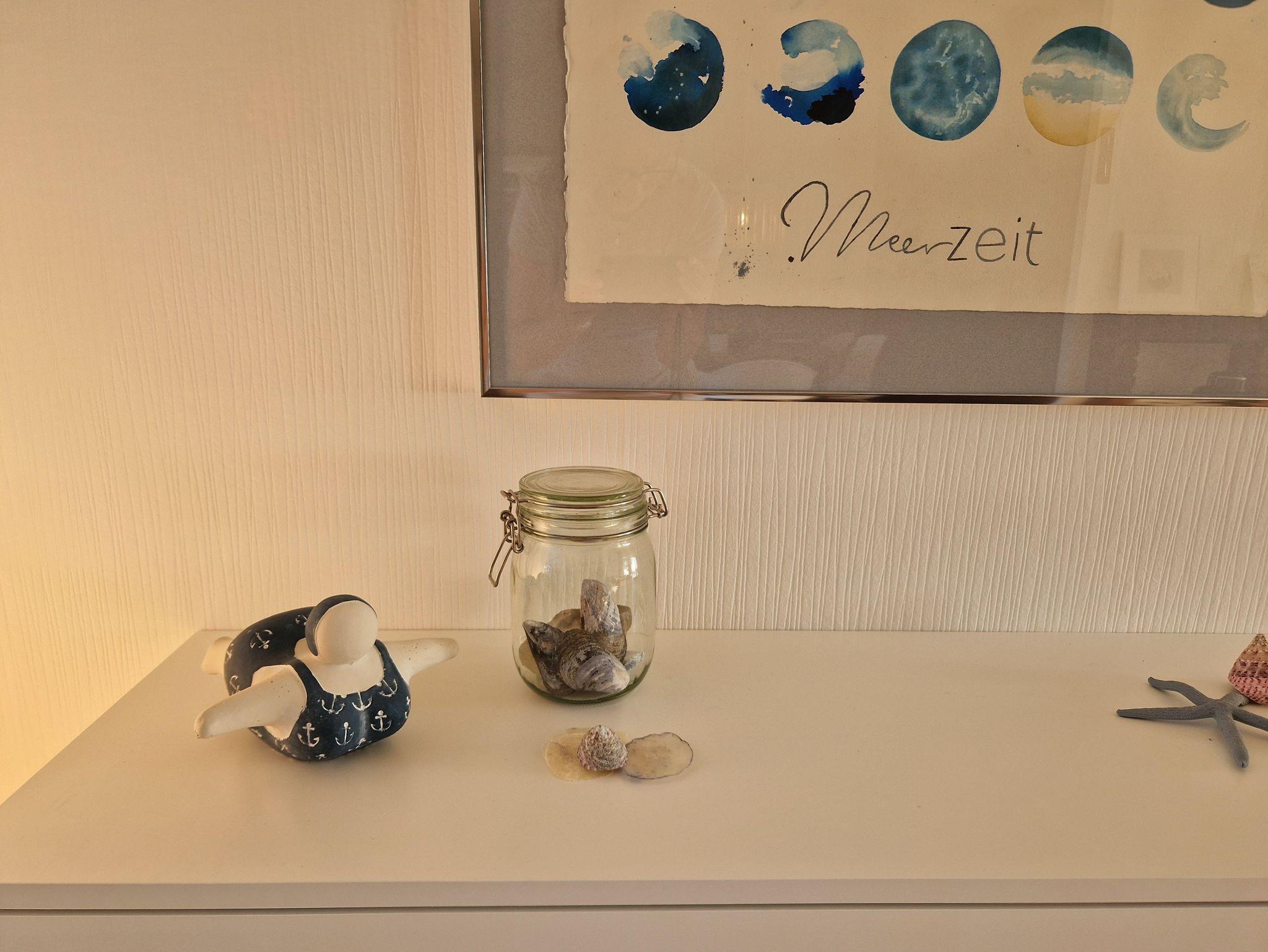 Das Ferienhaus Meerzeit für bis zu 5 Personen (plus 1 Kind bis 12 Jahren und 1 Kleinkind bis 3 Jahren) ist modern nordisch mit maritimen Akzenten gestaltet.