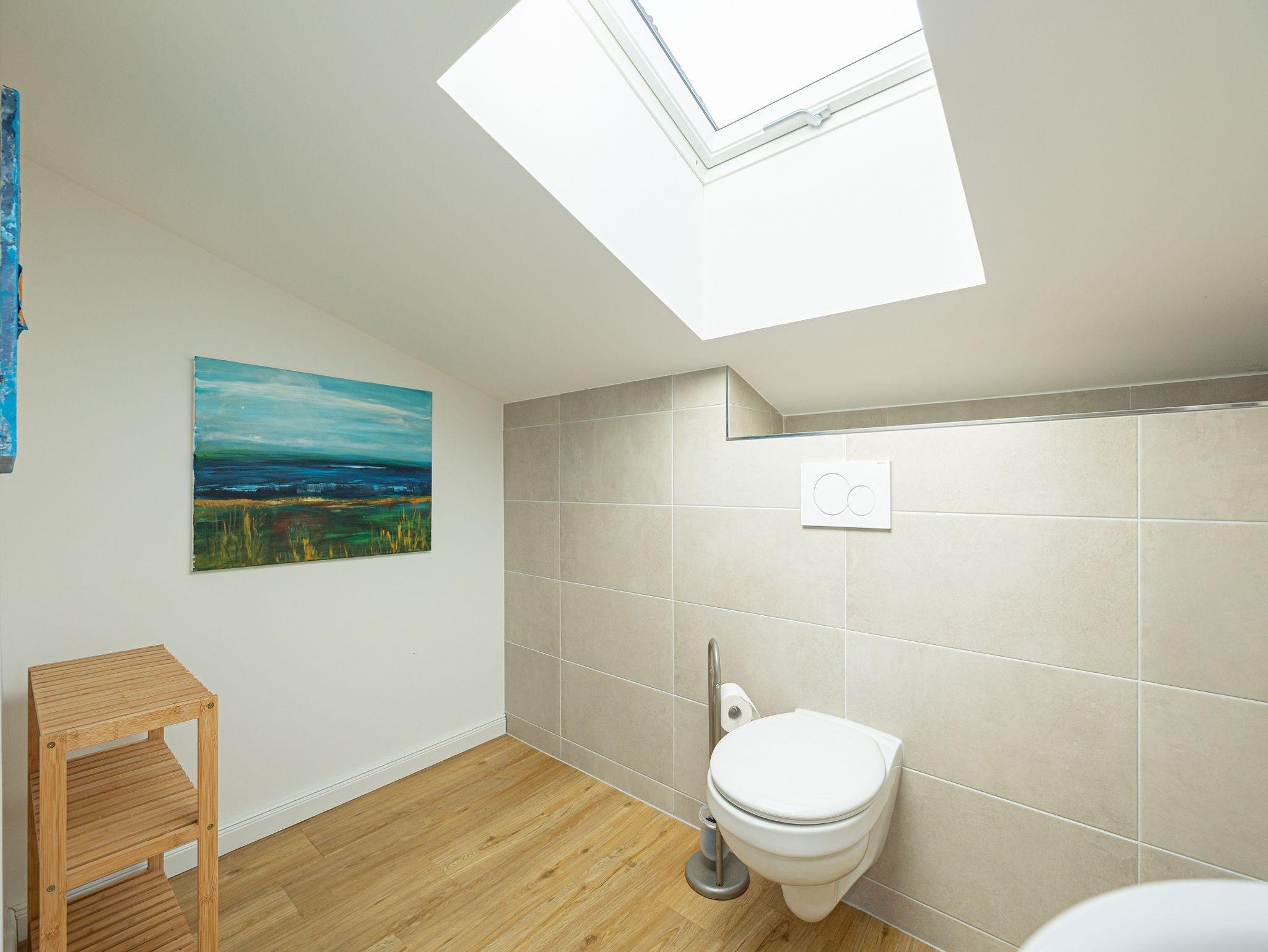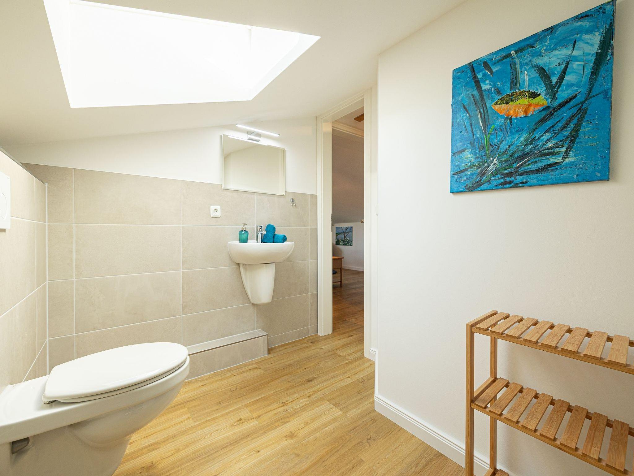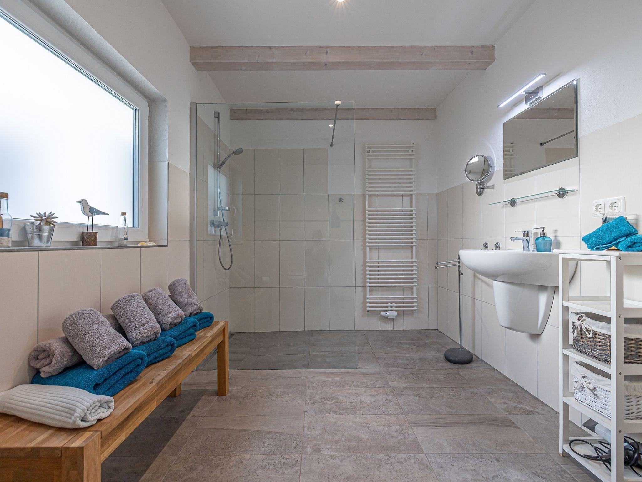 • Duschbad mit bodengelicher Dusche und Handtuchheizkörper; Handtücher inklusive