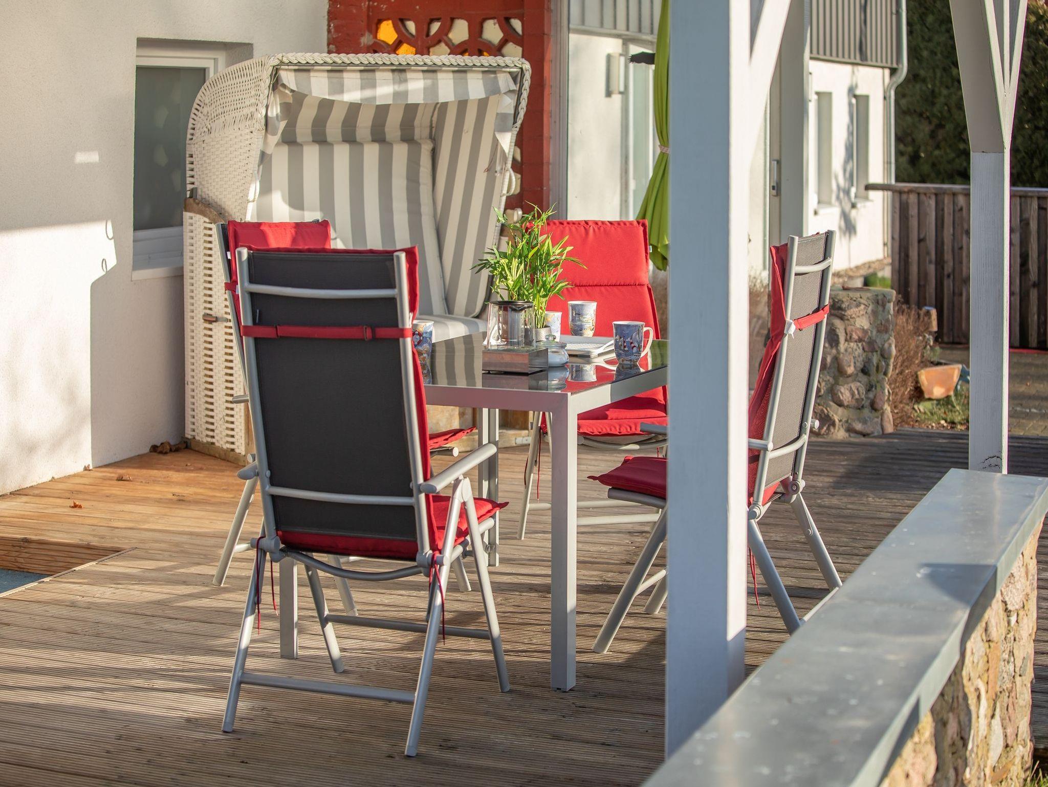 Modernes Ferienhaus Alt's Landhuus mit Sauna, Terrasse und Strandkorb nahe Ostsee.