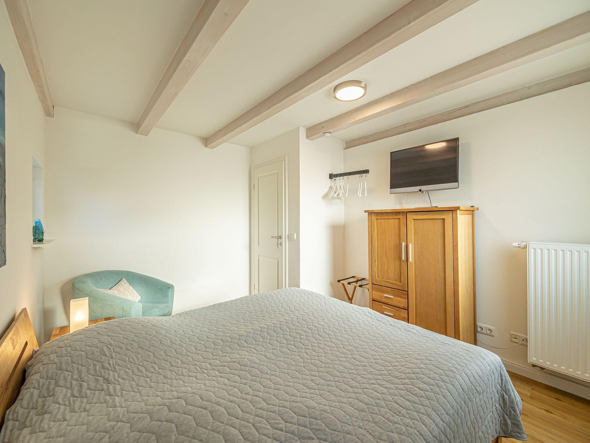 • Schlafzimmer mit Doppelbett und TV; Bettwäsche inklusive