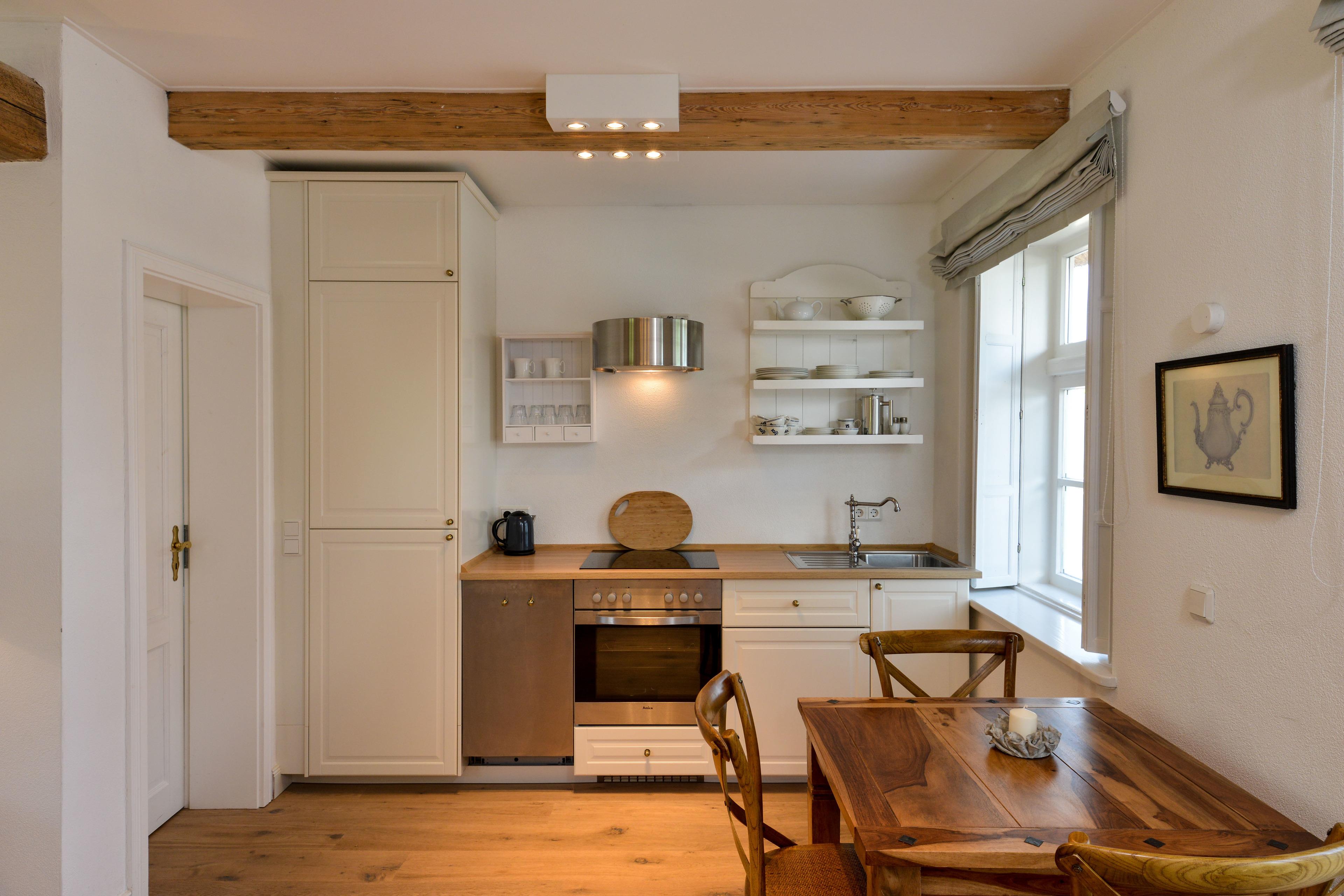 Wohn-/Esszimmer mit integrierter Küchenzeile, Bad mit bodengleicher Dusche und Badewanne, 1 Doppelzimmer