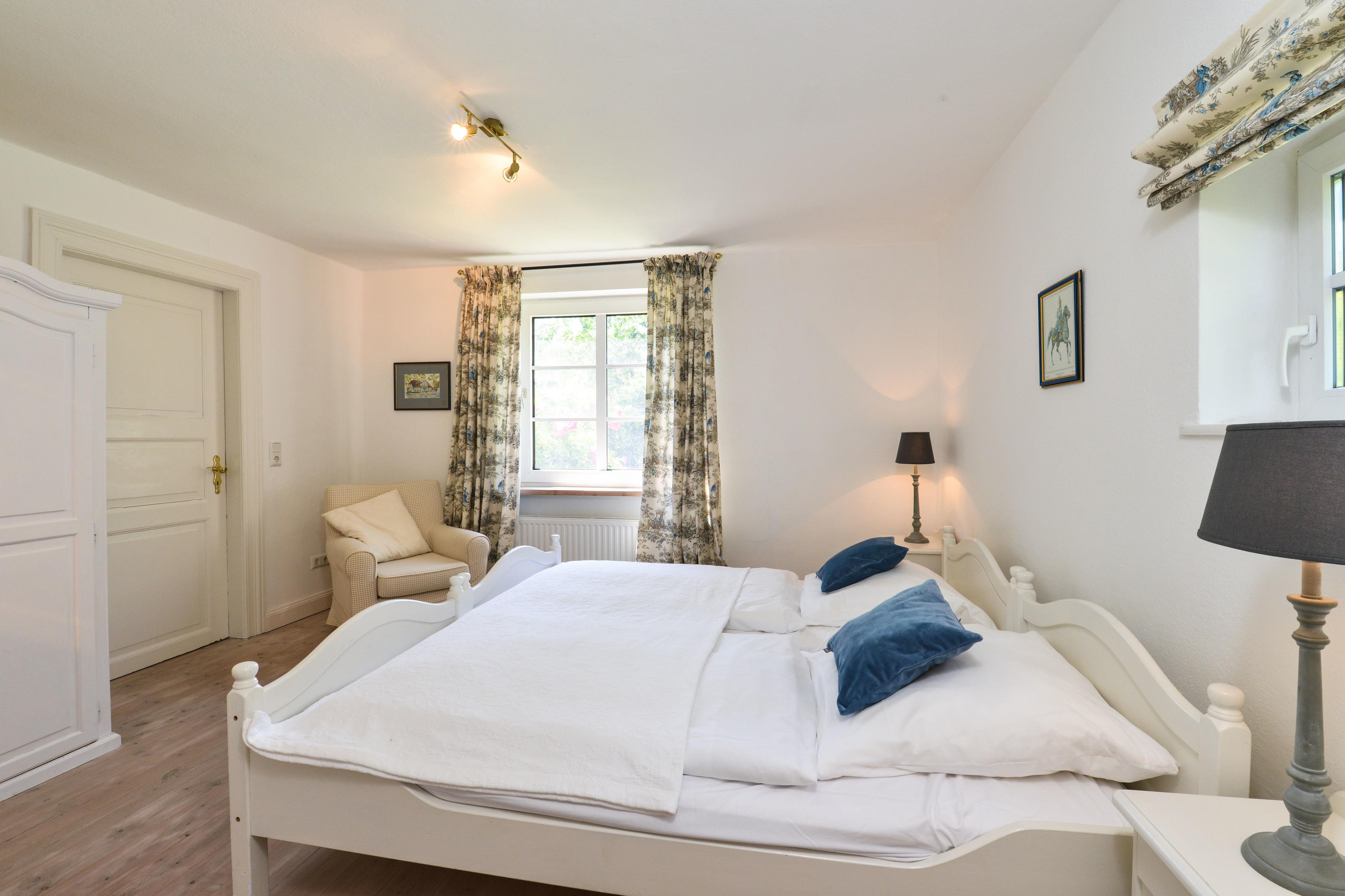 Weiße Hortensien, blaue Clematis, Lavendel und Rosen verzaubern dieses Haus. Benannt ist es Haus nach dem ehemaligen Stallmeister des Guts, dem "großen Michel" und nach seiner Tochter Micheline, der letzten Bewohnerin des Hauses, der unsere Familie sehr verbunden war. Nun dient es seit einigen Jahren Familien und Freunden als Ferienrefugium und kann durch die Anmietung des schräg gegenüberliegenden Kätchens auch für acht Personen genutzt werden. Sein Esszimmer mit großem Esstisch für bis zu 12 Personen und sein großzügiges Wohnzimmer, von dem man direkt auf die Terrasse und in den weitläufigen Garten an der Geltinger Au gelangt, bietet sich hierzu besonders an. Kinder haben hier Freiraum zu spielen oder das Trampolin zu nutzten. Gelegen am Ende der ländlich Straße "Am Schlossgraben," in der sich nur vier historische Häuser mit großen Gärten finden, ist das Dorf Gelting mit Spielplatz und Einkaufsmöglichkeiten fußläufig zu erreichen. Ebenso sind die nahe gelegenen Strände der Geltinger Bucht in Falshöft, Wackerballig und Pottloch schnell erreichbar.