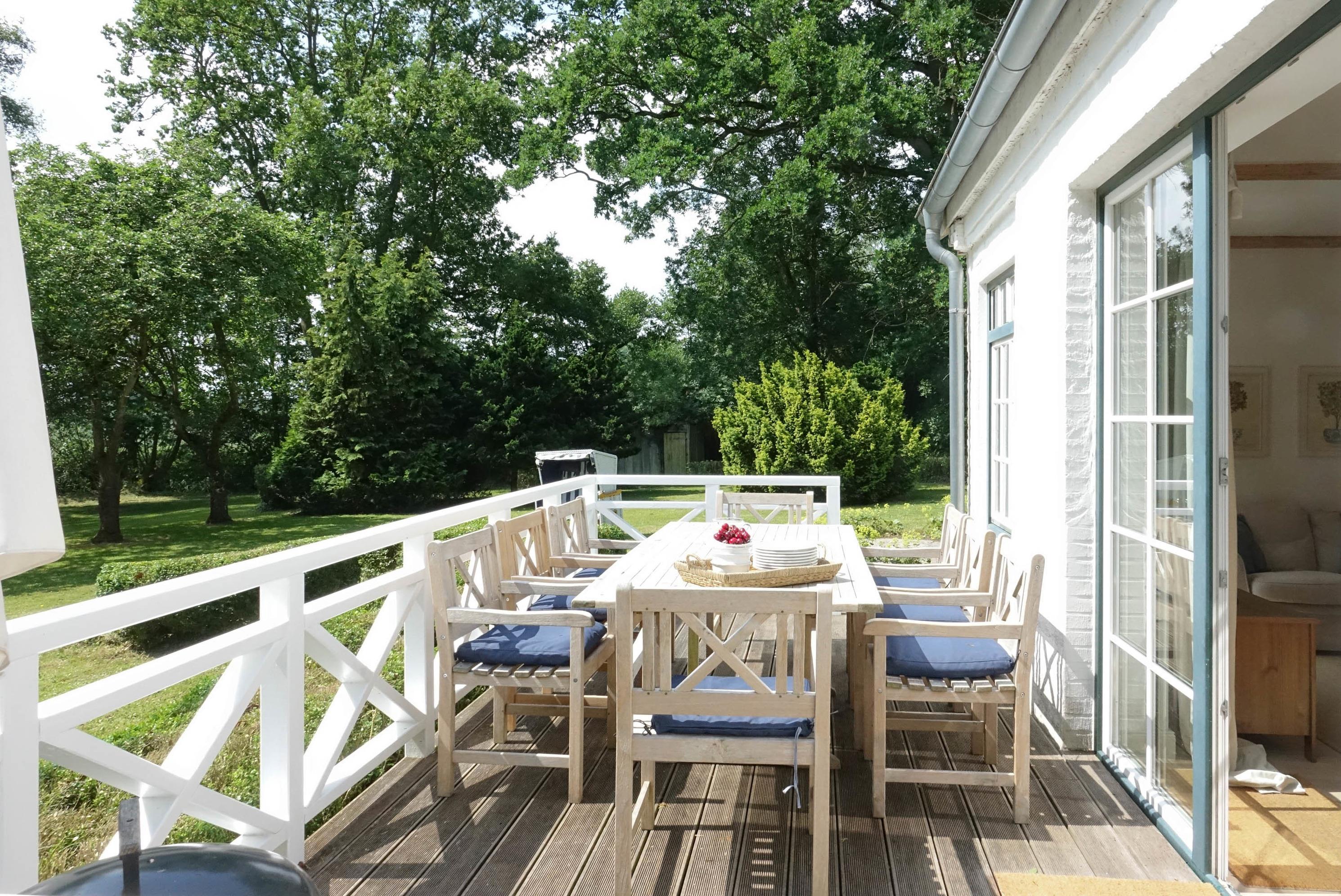 Dieses Fachwerkhaus ist eines unserer ältesten Ferienhäuser. Fern von Nachbarn verleiht es das Gefühl eines eigenen Landhauses in das man nach einem Tag an den nahe gelegenen Stränden zurückkehrt, die Kinder im Garten spielen, schaukeln und auf dem Trampolin hüpfen, während Erwachsene auf der Terrasse die Sonne beim untergehen beobachten.