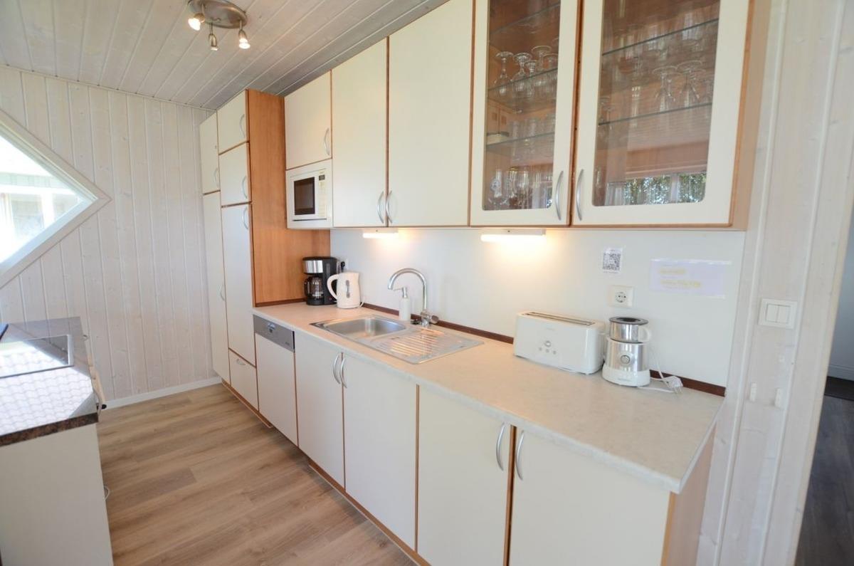 Von Wohnzimmer, Esstisch, Küche und Schlafzimmer haben Sie durch bodentiefe Fenster einen herrlichen Meerblick auf die Ostsee. Die offene Küche mit einer Kochinsel aus Granitstein ist mit allem ausgestattet, was Sie brauchen.