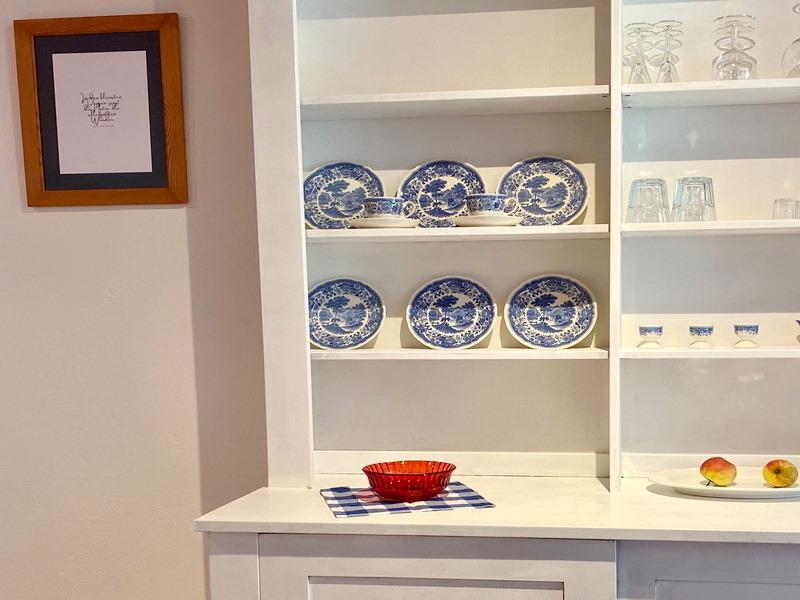 Die "Bauernstube" befindet sich im Haupthaus des Dreiseithofes. Sie wohnen also unter Reet. Über die dazugehörige Terrasse gelangen Sie barrierefrei in das Wohnzimmer und anschließend in die Küche mit Essplatz. In der kleinen Küchenzeile finden Sie vom Wasserkocher über Geschirrspülmaschine bis hin zur Mikrowelle mit Backfunktion u.a. alles, was man für einen angenehmen Urlaub so braucht.