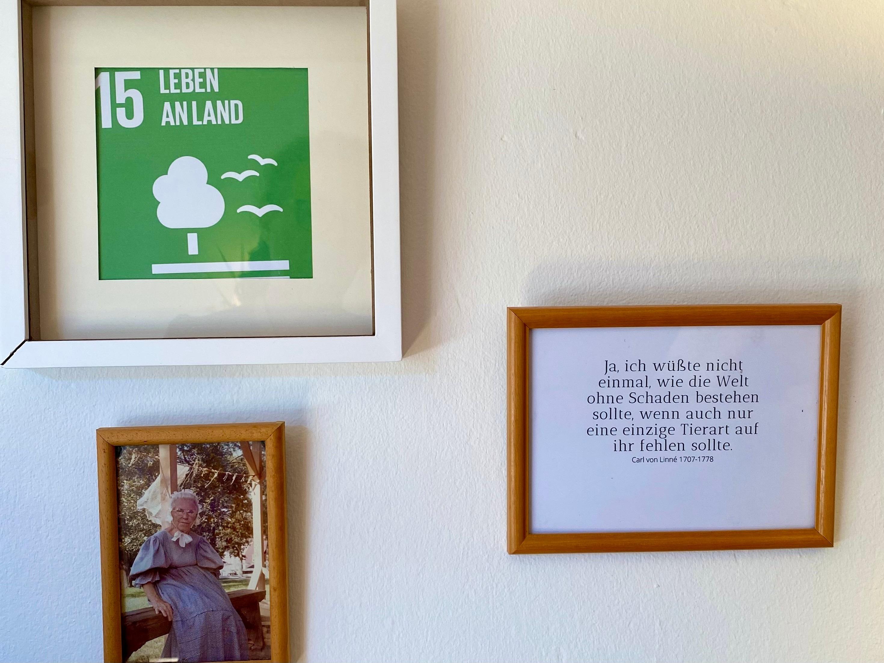 Alle Quartiere sind hell und skandinavisch eingerichtet. Wir haben in allen Quartieren (außer der Bauernstube) metallfreie Biobetten aus Vollholz. Extralange Betten, Bio und fair gehandelte Bettwäsche in Übergröße, Lunchpakete oder Gemüseservice. Wir versuchen, Ihnen den Urlaub so bequem wie möglich zu machen. Alles ist eingebunden in unser ökologisches Konzept mit möglichst vielen Kreisläufen: wir erzeugen Strom mit BHKW und Sonne, nutzen das Wasser mehrfach und betreiben eine eigene, vollbiologische Kläranlage mit Wasseraufbereitung. Unseren Übernachtungsgästen mit Elektroauto bieten wir die Möglichkeit ihr E-Auto bei uns mit eigen erzeugtem oder Ökostrom zu laden. Wir haben eine Streuobstwiese und diverse Knicks angelegt um die Biodiversität zu fördern. Als unser Hausgast dürfen Sie unsere Wildnis hinterm Haus gerne besuchen. Lassen Sie sich vom Surren der Bienen und Flattern der Schmetterlinge auf der Wiese, kreisenden Greifvögel oder den grasenden Robustrindern für die Natur begeistern und Langsamzeit genießen.