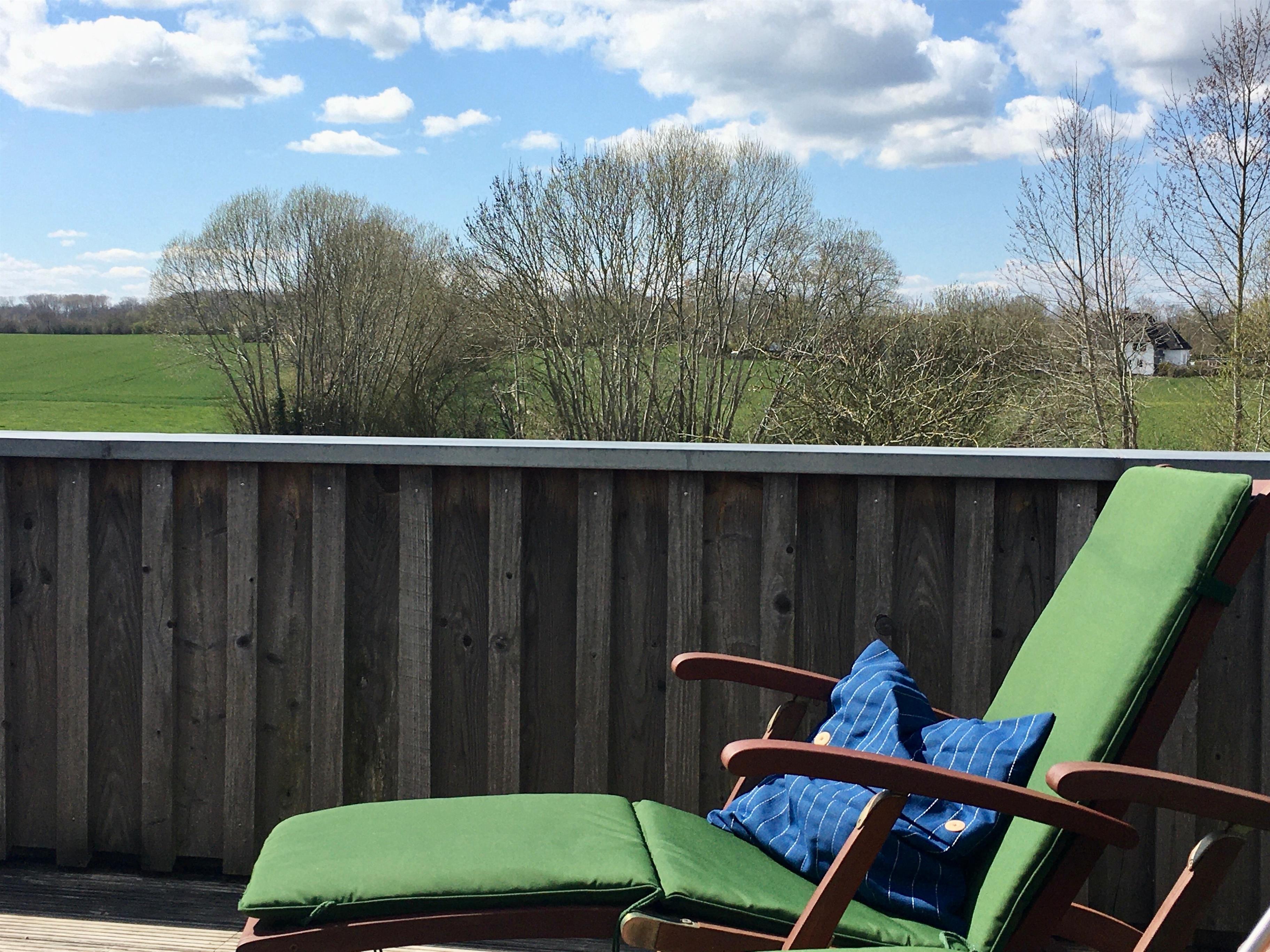 Nachhaltige Ferienwohnung "Wolken" auf historischem Dreiseitenhof in Gelting mit Panoramablick und Ökostrom.