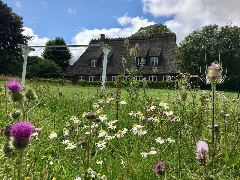 Alle Quartiere sind hell und skandinavisch eingerichtet. Wir haben in allen Quartieren (außer der Bauernstube) metallfreie Biobetten aus Vollholz. Extralange Betten, Bio und fair gehandelte Bettwäsche in Übergröße, Lunchpakete oder Gemüseservice. Wir versuchen, Ihnen den Urlaub so bequem wie möglich zu machen. Alles ist eingebunden in unser ökologisches Konzept mit möglichst vielen Kreisläufen: wir erzeugen Strom mit BHKW und Sonne, nutzen das Wasser mehrfach und betreiben eine eigene, vollbiologische Kläranlage mit Wasseraufbereitung. Unseren Übernachtungsgästen mit Elektroauto bieten wir die Möglichkeit ihr E-Auto bei uns mit eigen erzeugtem oder Ökostrom zu laden. Wir haben eine Streuobstwiese und diverse Knicks angelegt um die Biodiversität zu fördern. Als unser Hausgast dürfen Sie unsere Wildnis hinterm Haus gerne besuchen. Lassen Sie sich vom Surren der Bienen und Flattern der Schmetterlinge auf der Wiese, kreisenden Greifvögel oder den grasenden Robustrindern für die Natur begeistern und Langsamzeit genießen.