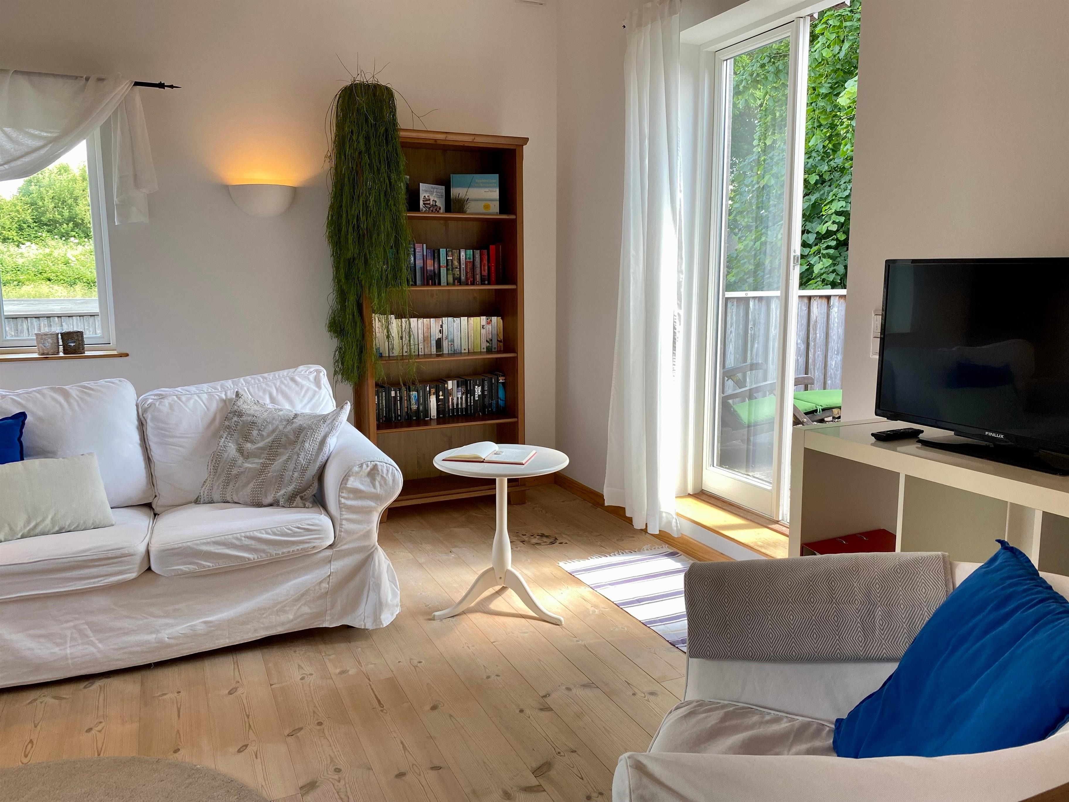 Die kleine Küchenzeile bietet alles, was man für ein leckeres Urlaubsmenü benötigt. Der Wohnraum verfügt über einen großzügigen Esstisch, und aus dem bequemen Sofa möchten Sie ganz bestimmt so schnell nicht mehr aufstehen, wenn Sie sich einmal hineingesetzt haben. Ruhesessel und der Flatscreen für beste TV-Unterhaltung runden das Entspannungskonzept passend ab.