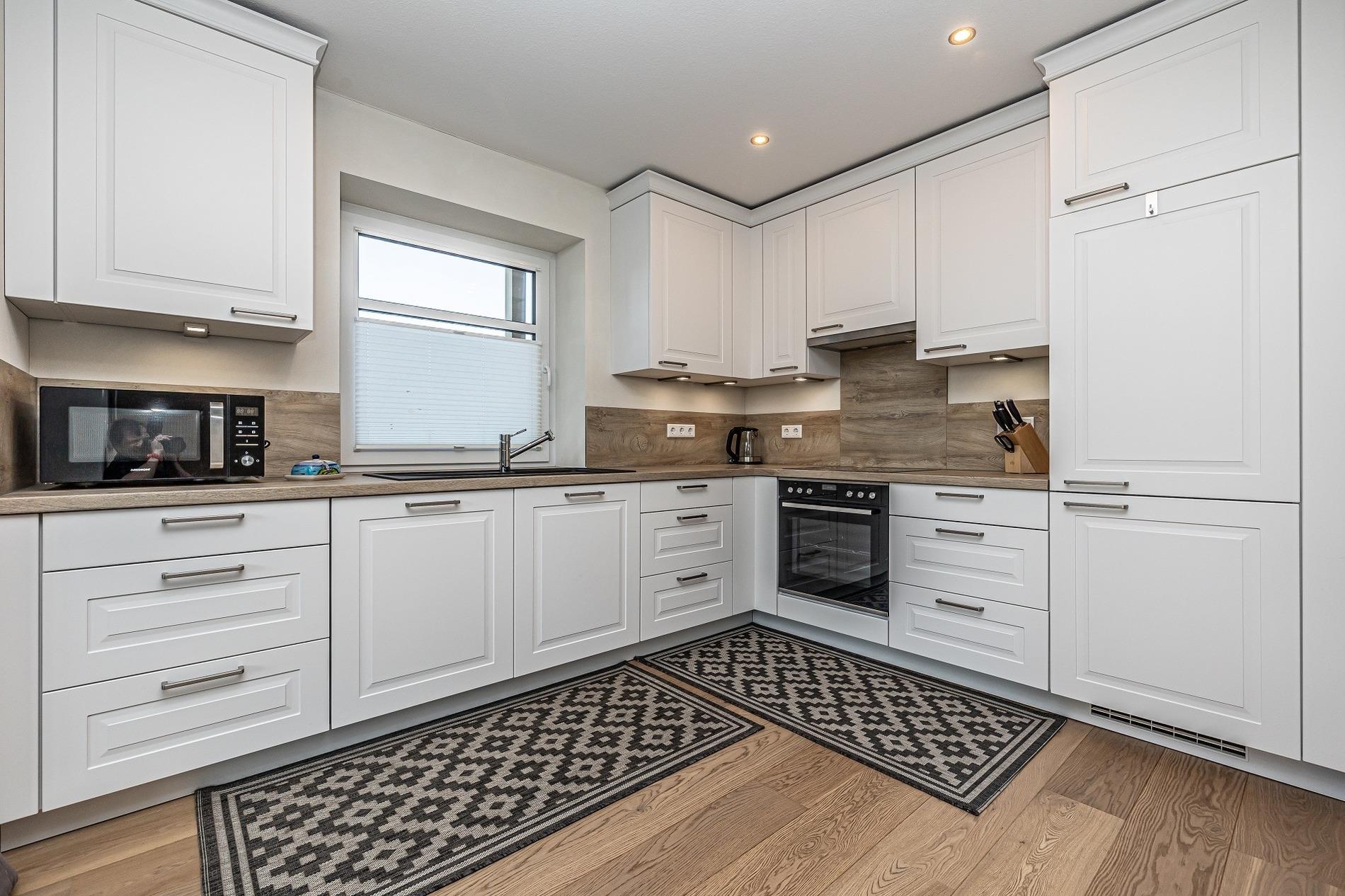Küche mit Induktionsherd, Backofen, Kühl-Gefrierkombination, Mikrowelle,