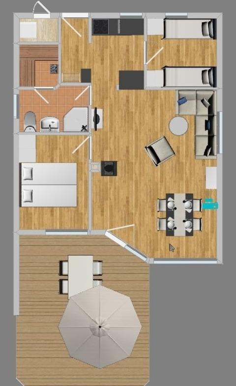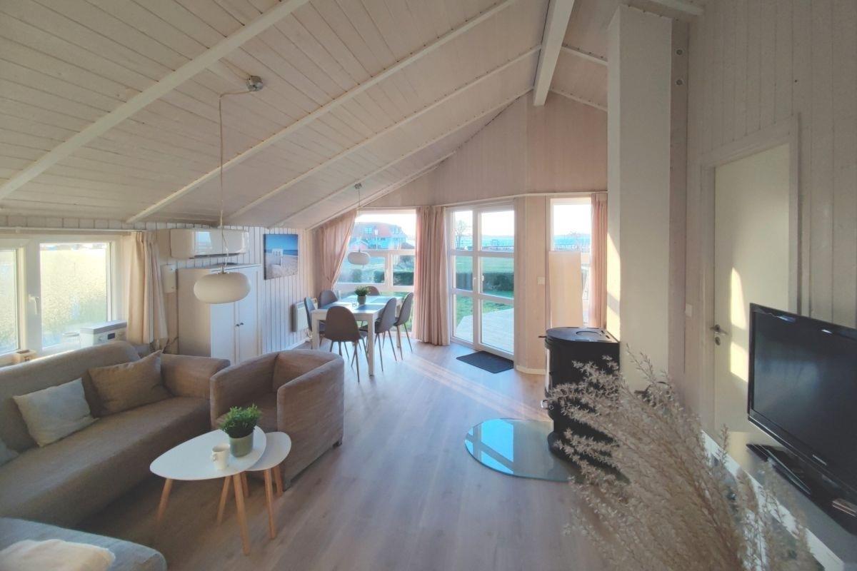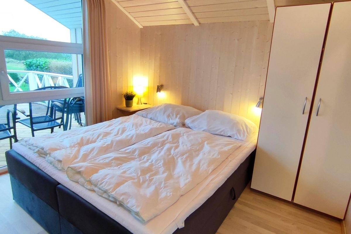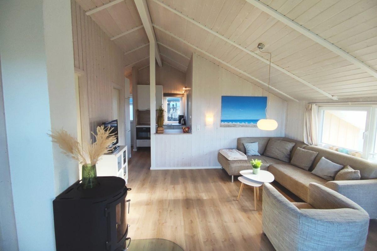 Nach einem Tag an der frischen Luft können Sie sich mit einem Saunagang verwöhnen. Vom Wohnzimmer haben Sie Zugang zu der Terrasse mit Blick auf den Strand. Hier können Sie beim Sonnenbaden die Aussicht genießen oder einen gemütlichen Grillabend mit Freunden und Familie verbringen. Das Hauptschlafzimmer bietet mit einem großzügigen, 1,60m breiten Boxspring-Doppelbett hervorragenden Schlafkomfort. Das kleinere Schlafzimmer ist mit zwei ebenfalls hochwertigen Betten (200cm x 80 cm) mit Toppern ausgestattet.