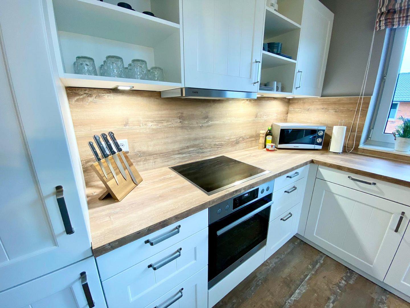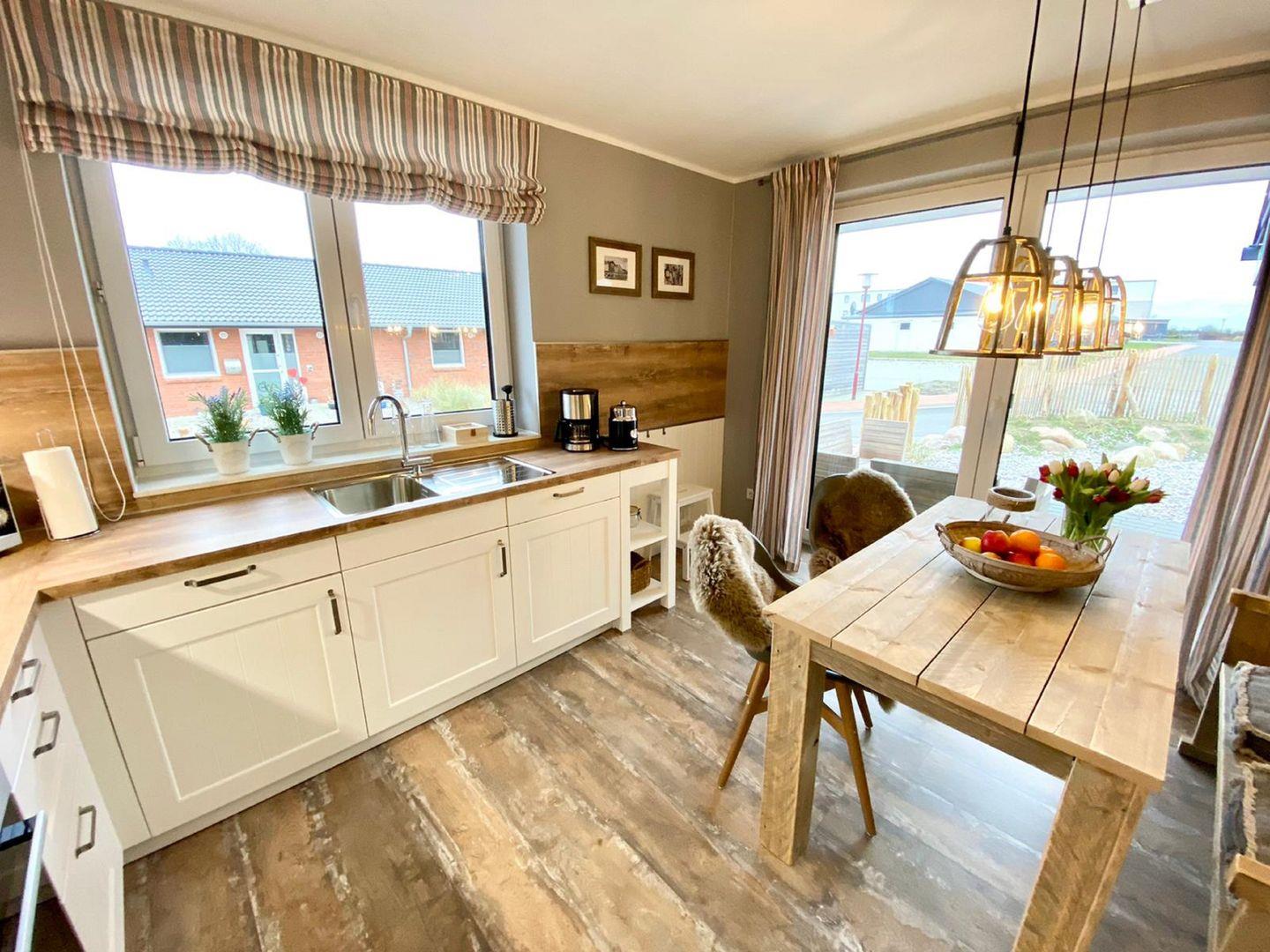 Die charmante Doppelhaushälfte "Sandpiper" mit 92m² liegt in einer absoluten Traumlage in der Nähe der Geltinger Birk. Die Doppelhaushälfte ist komplett ebenerdig und verfügt über eine offene Wohnraumgestaltung. Die gesamte Einrichtung des Hauses ist sehr modern und im maritimen, dänischen Stil gehalten. Das Wohnzimmer ist mit einem gemütlichen Sofa, einem Ohrensessel mit Fußhocker und einem Flatscreen-TV ausgestattet. Durch eine stilvolle TV-Konsole wird der Essbereich vom Wohnzimmer optisch getrennt. Der Essbereich hat einen exklusiven Holztisch mit einer einzigartigen Sitzbank. Die offene, moderne Küche ist mit vielen Utensilien ausgestattet, wie einem Handmixer, einem Stabmixer, einer Kaffeemaschine und einem Geschirrspüler. Die beiden Schlafzimmer sind jeweils mit einem Doppelbett eingerichtet. Hier dominieren graue und sandfarbene Töne, die mit weißen Möbeln kombiniert sind und so eine sehr gemütliche Wohlfühlatmosphäre schaffen. Das große Badezimmer mit liebevollen Dekorationsdetails ist sehr modern und bietet eine ebenerdige Dusche, einen Föhn und einen Kosmetikspiegel. Zudem befindet sich im Haus auch noch ein Gäste-WC. Außerdem können Sie eine Waschmaschine, ein Staubsauger, ein Wäscheständer und
