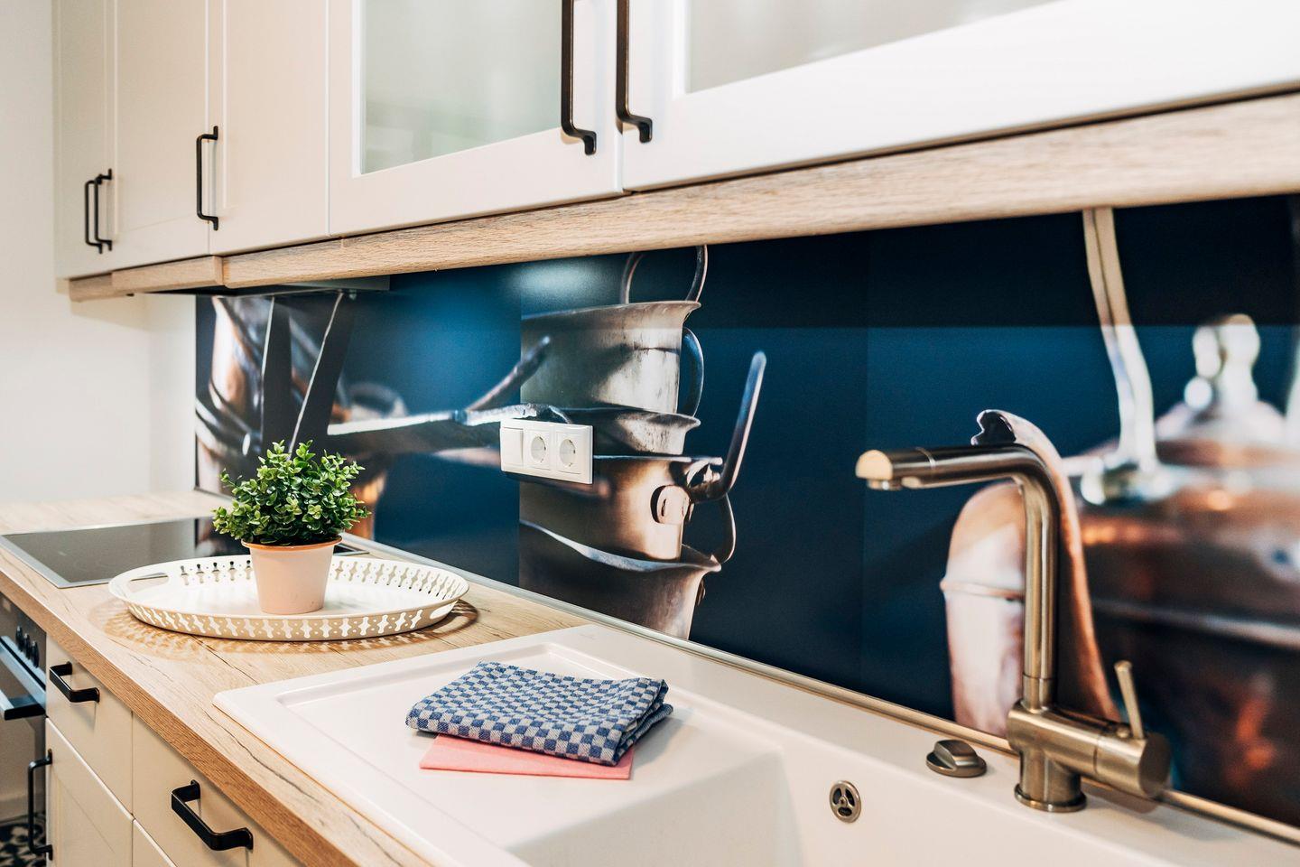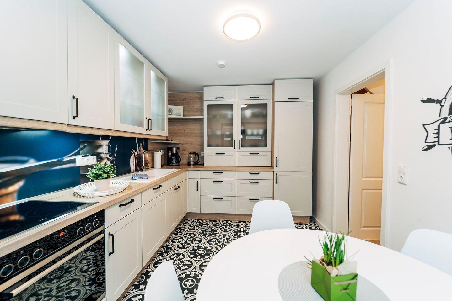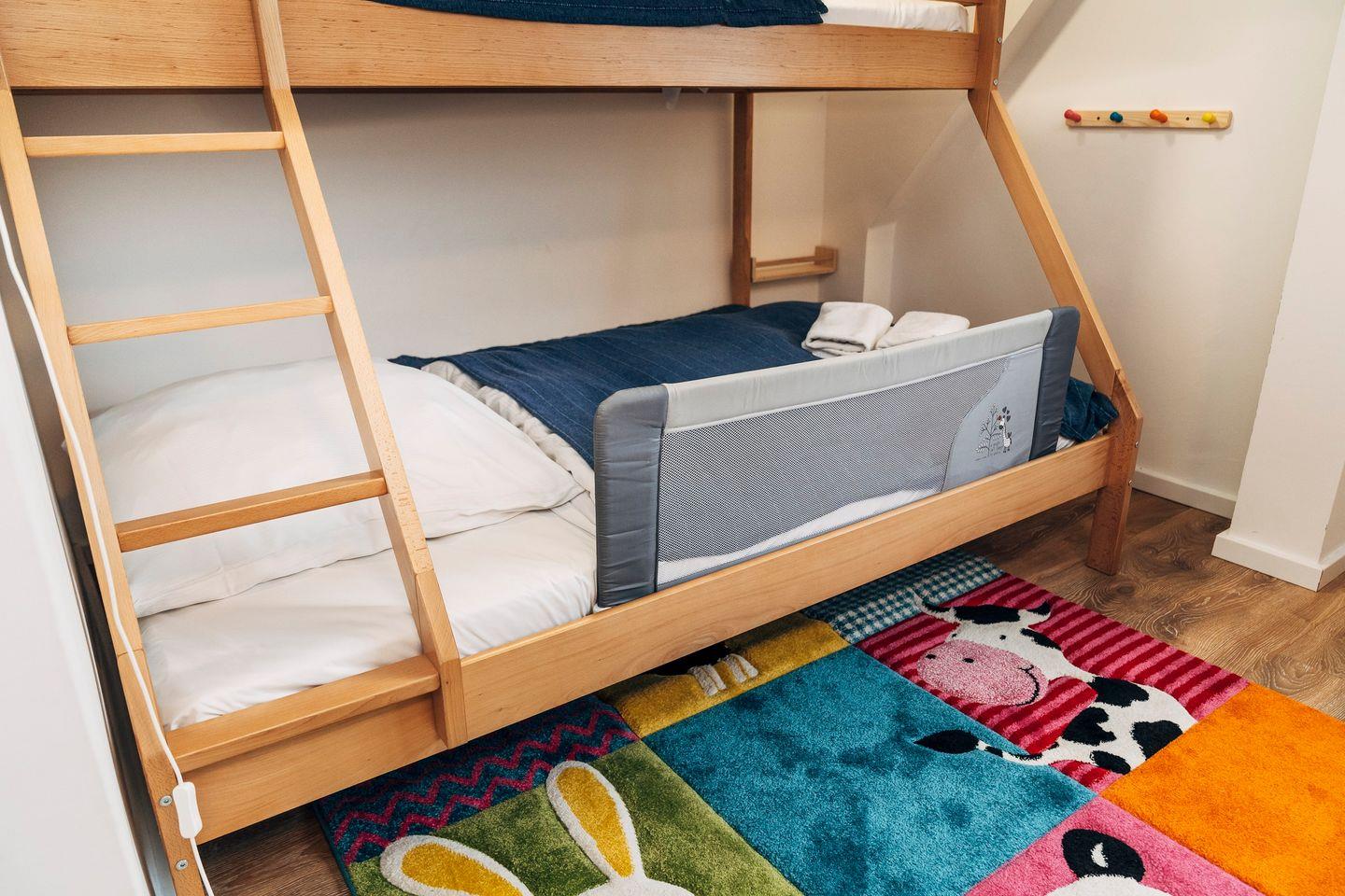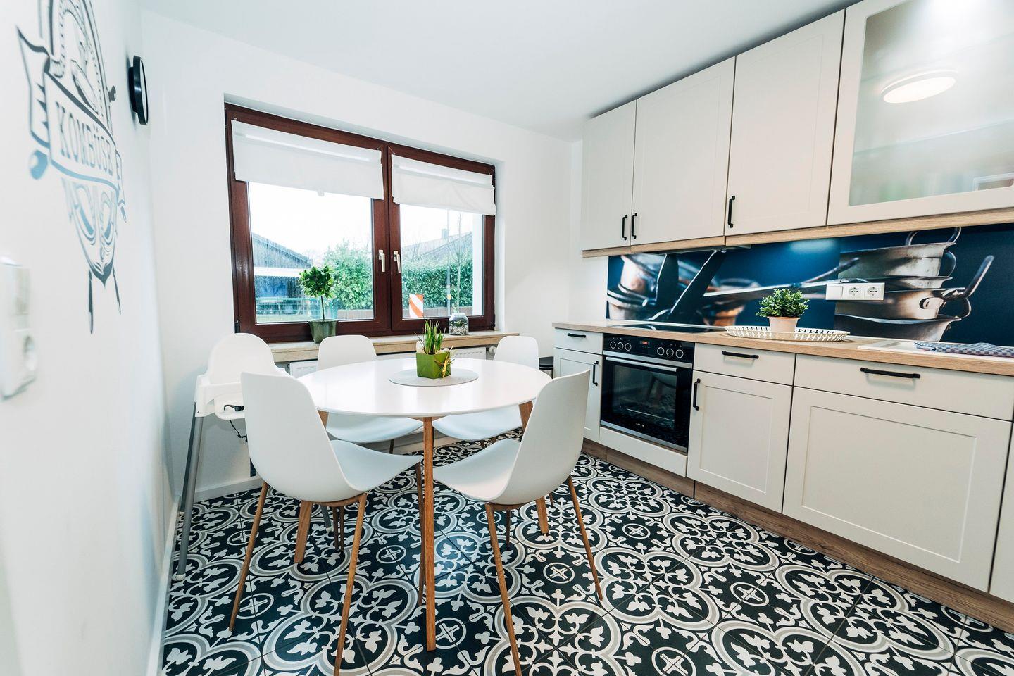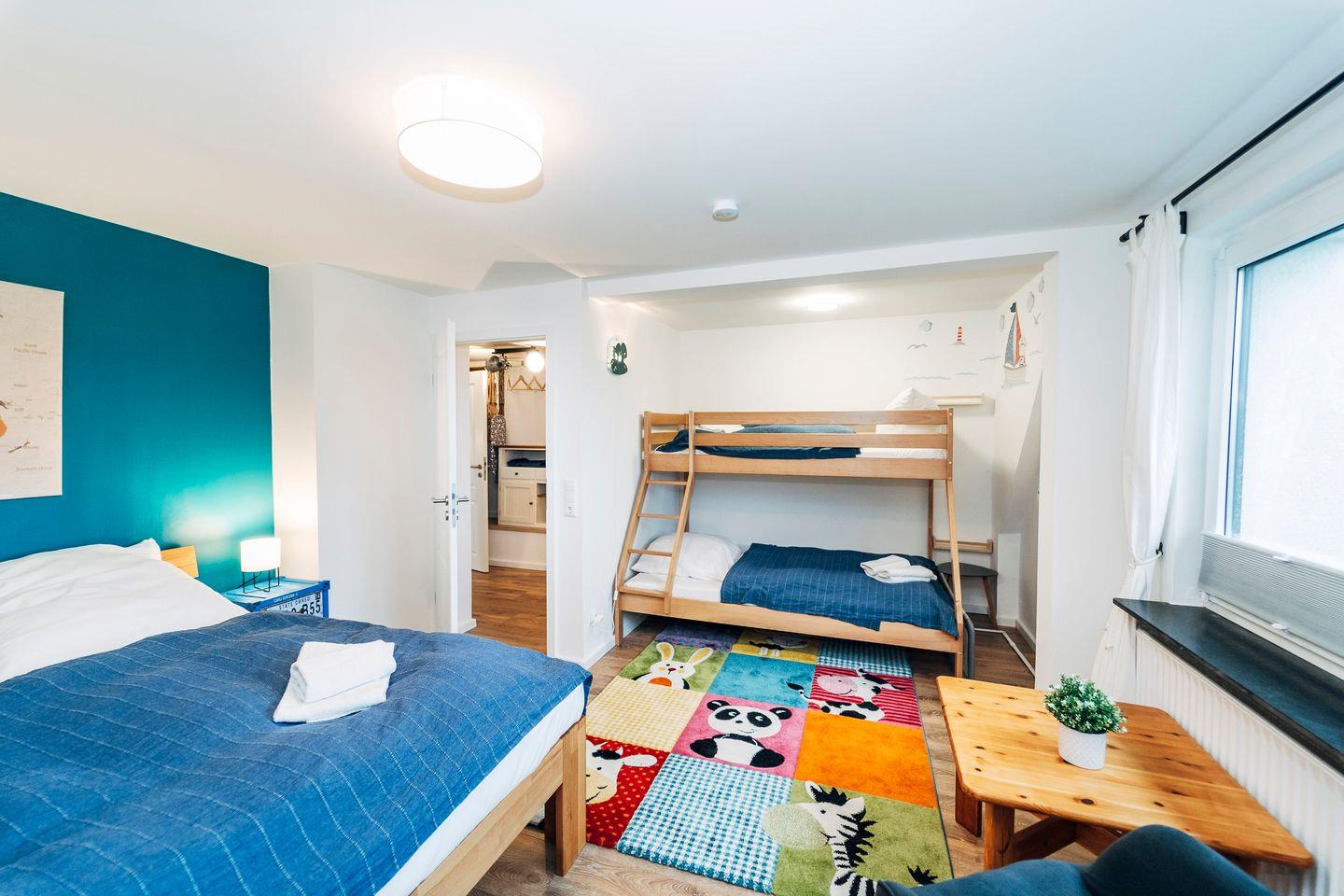 Das vollausgestattete Ferienhaus "Waterkant" hat eine Größe von ca. 90m² und bietet Platz für 4 Personen und 3 Kindern. Es erstreckt sich auf zwei Etagen und fußläufig erreichen Sie einen wundervollen Ostsee-Sandstrand. Die stilvolle Küche bietet eine qualitativ hochwertige Ausstattung und einen Esstisch. Das gemütliche Wohnzimmer mit Essbereich für alle Gäste lädt zu geselligen Spieleabende mit den hauseigenen Spielen ein. Machen Sie es sich auf dem Sofa bequem und schauen Sie einen unterhaltsamen Film auf dem Flachbild-Fernseher oder lesen Sie eines der hauseigenen Bücher. Das moderne Tageslichtbad ist mit einer ebenerdigen Dusche und einem Föhn ausgestattet. In diesem Raum befindet sich kein WC. Das WC ist in einem separaten Raum vorhanden. Im Obergeschoss befindet sich die beiden Schlafzimmer. Das eine Schlafzimmer ist mit einem King-Size Doppelbett (200x200cm) und einer Kommode ausgestattet. In dem anderen Schlafzimmer befinden sich ebenfalls ein King-Size Doppelbett (200x200cm) und noch ein Etagenbett. In dem unteren Teil (140x200cm) können zwei Kinder schlafen und oben ist Platz für ein weiteres Kind (90x200cm). Ein Rausfallschutz ist zusätzlich nutzbar und sorgt für die Sicherheit der kleinen Gäste beim Schlafen. Beide Schlafzimmer sind zudem mit Verdunkelungsmöglichkeiten, einem Lesesessel und einem Flachbild-Fernseher ausgestattet. Im Flur ist für alle Gäste eine Möglichkeit vorhanden, um Kleidung und Gepäck unterzubringen. Für die kleinen Gäste sind ein Hochstuhl, ein Kinderreisebett und ein Kindertritthocker vorhanden. Zum Ferienhaus gehört ein großer Garten, sowie eine sichtgeschützte Terrasse. Genießen Sie beim Frühstück die frische Ostseeluft oder verbringen Sie unvergessliche Grillabende. Unter dem Sonnenschirm können Sie auf den Sonnenliegen entspannt die Sommertage verbringen. An kühleren Tagen steht Ihnen eine eigene finnische Sauna zur Verfügung, die im Schuppen untergebracht ist. Vor der Unterkunft steht Ihnen ein kostenloser Stellplatz für einen PKW zur Verfügung. Weitere Fahrzeuge können auf dem öffentlichen Parkplatz parken, der wenige Meter vom Haus entfernt ist. Ihre Fahrräder können Sie im abschließbaren Schuppen unterstellen. Hier befindet sich zudem eine Möglichkeit um E-Bikes zu laden. Am nahe gelegenen Strand befindet sich ein öffentlicher Spielplatz. Auch eine Surfschule ist am Strand ansässig und ermöglicht Ihnen einen erlebnisreichen Urlaub. Das Ferienhaus "Waterkant" ist der perfekte Ausgangsort für Ihren Strandurlaub, Wassersport oder ausgedehnte Spaziergänge durch das Naturschutzgebiet der Geltinger Birk.