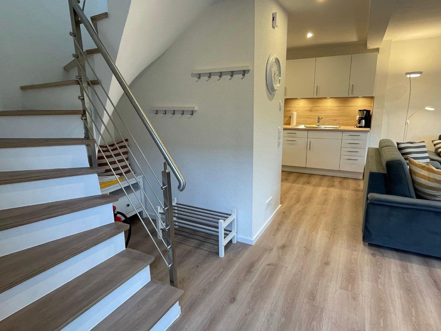 Die 82m² große, zweigeschossige Wohnung "Stuuv twee" befindet sich in einem grundsanierten Angeliter Wohnhaus. Im Erdgeschoss befinden sich neben der Küche auch das Badezimmer und der Wohn- und Essbereich mit Schlafcouch. Im ersten Obergeschoss bieten zwei Schlafzimmer mit Doppelbetten (180x200cm) Erholung. Ein Gäste-WC ist ebenfalls vorhanden. Die offene, helle Küche bietet eine qualitativ hochwertige Ausstattung und geht in das stilvoll eingerichtete Ess- und Wohnzimmer über. Im Wohnzimmer können Sie es sich vor dem Flachbild-TV gemütlich machen. Vom Wohnbereich haben Sie direkten Zugang zur großen Terrasse mit eigenem, teilweise eingezäunten Gartenstück. Das helle Badezimmer bietet unter anderem eine Dusche und einen Föhn. An kalten Tagen können Sie sich in der finnischen Sauna aufwärmen. Zusätzlicher Komfort ist durch einen PKW-Stellplatz mit E-Ladesäule direkt am Haus gewährleistet. Im abschließbaren Fahrradschuppen können Sie Ihre Fahrräder unterstellen.