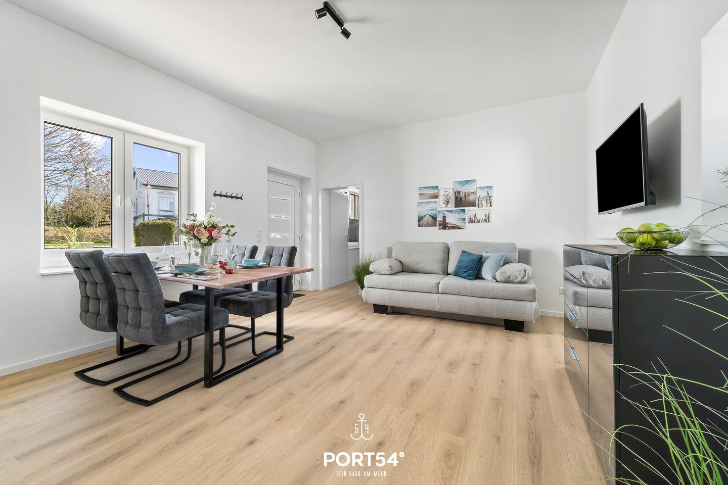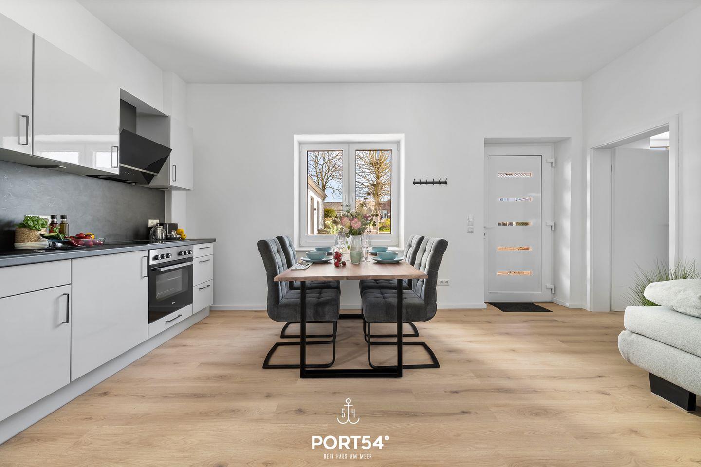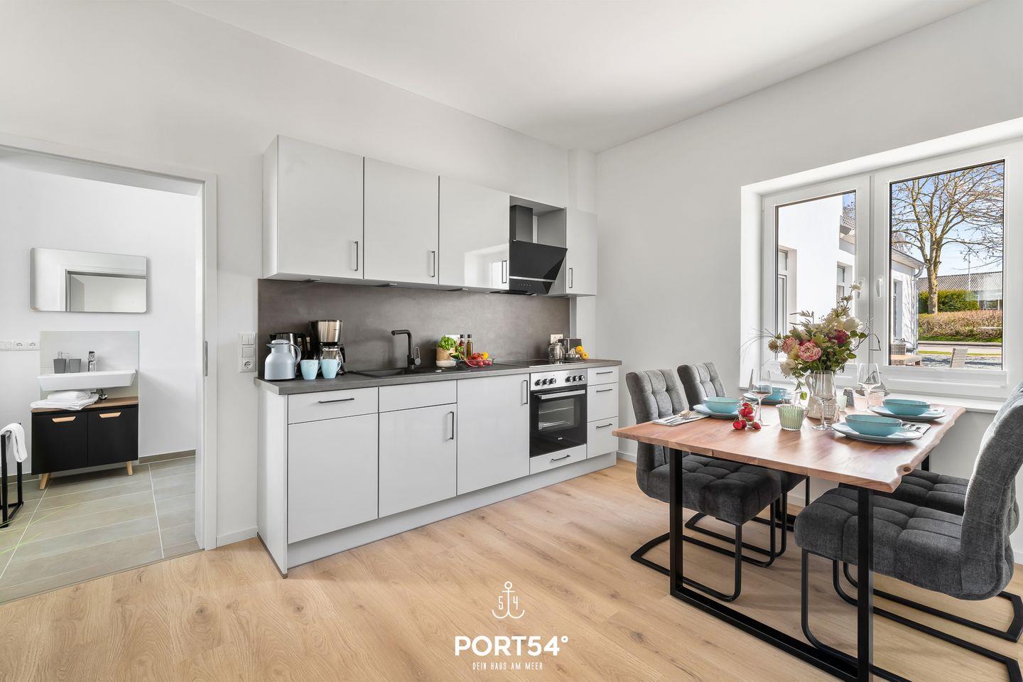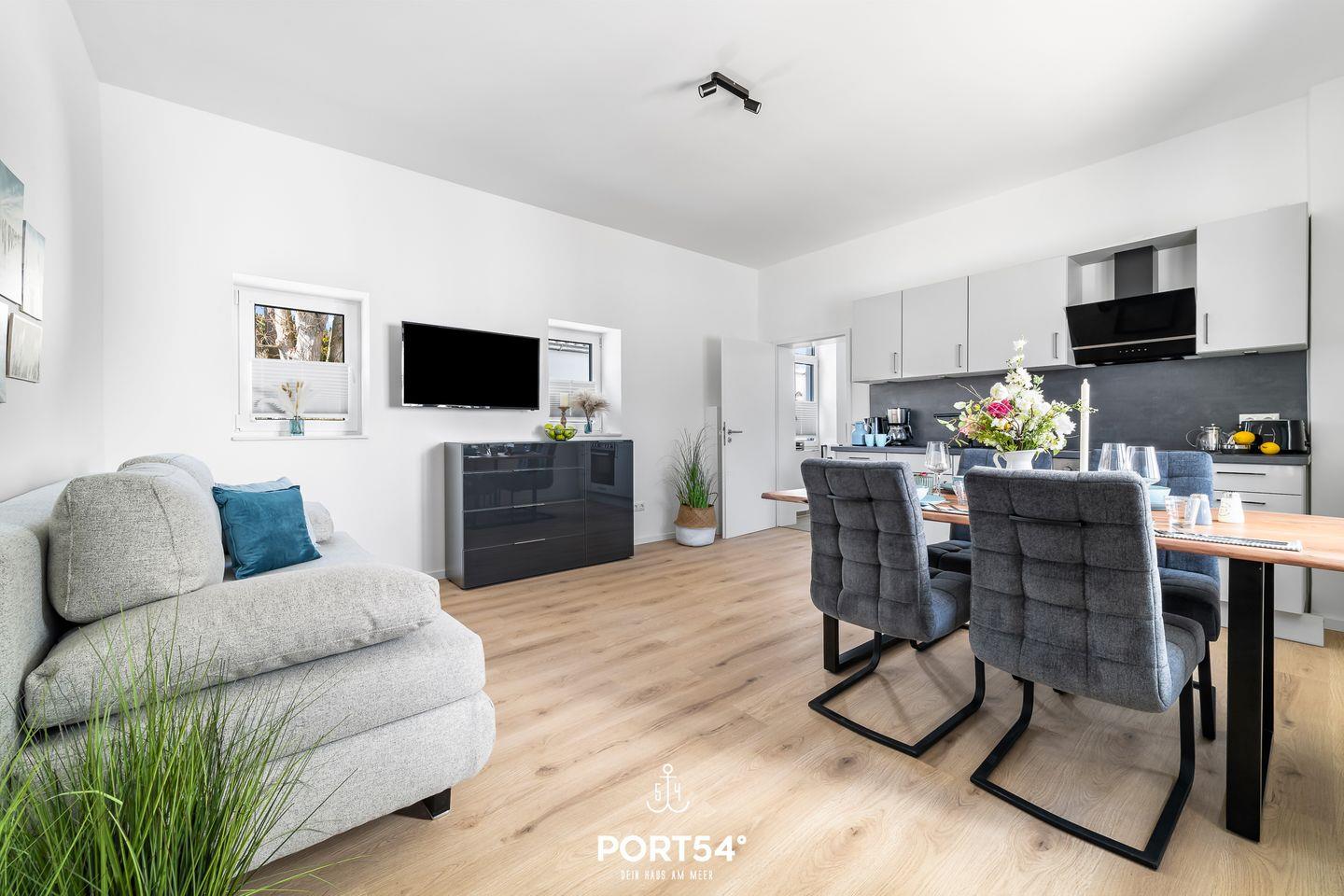 Die kernsanierte Ferienwohnung Strandmuschel in Gelting bietet eine möblierte Terrasse, Elektrogrill und gemütliches Wohnen nahe der Ostsee.