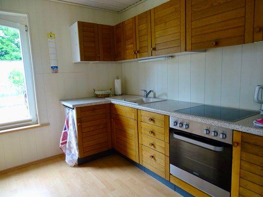 Die voll ausgestattete Küche verfügt über Herd, Backofen, Kühlschrank sowie zahlreiche Kochutensilien, Geschirr und praktische Geräte wie Toaster und Kaffeemaschine – ideal für gemeinsame Mahlzeiten.