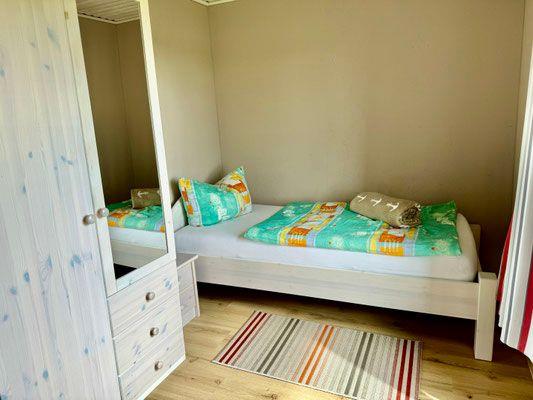 Ein Schlafzimmer ist mit einem großen Doppelbett ausgestattet, das zweite bietet zwei Einzelbetten – perfekt für Familien oder Freunde.