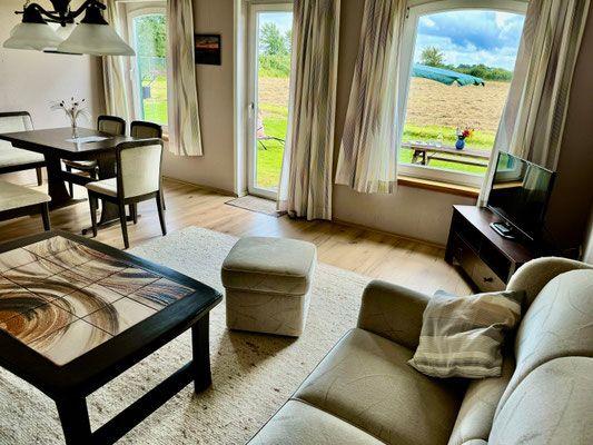 Im gemütlichen Wohnzimmer erwarten Sie eine bequeme Couch, Sessel, Couchtisch sowie ein Fernseher (SAT) und ein Essbereich für gesellige Stunden.