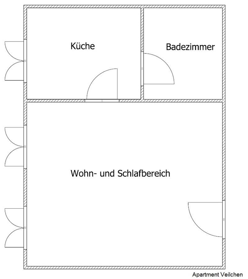 Die ca. 40 m² große, gemütliche Wohnung ist mit einm kombinierten Wohn- und Schlafbereich ausgestattet. Der Schlafplatz besteht aus einem Schrankbett, welches die Größe eines Doppelbettes besitzt. Somit kann dieses ohne Probleme tagsüber zugeklappt werden, um den Wohnraum voll ausschöpfen zu können. Bei der Anreise mit Kleinkind kann kostenlos ein Kinderreisebett und auf Anfrage weiteres Zubehör bereitgestellt werden.