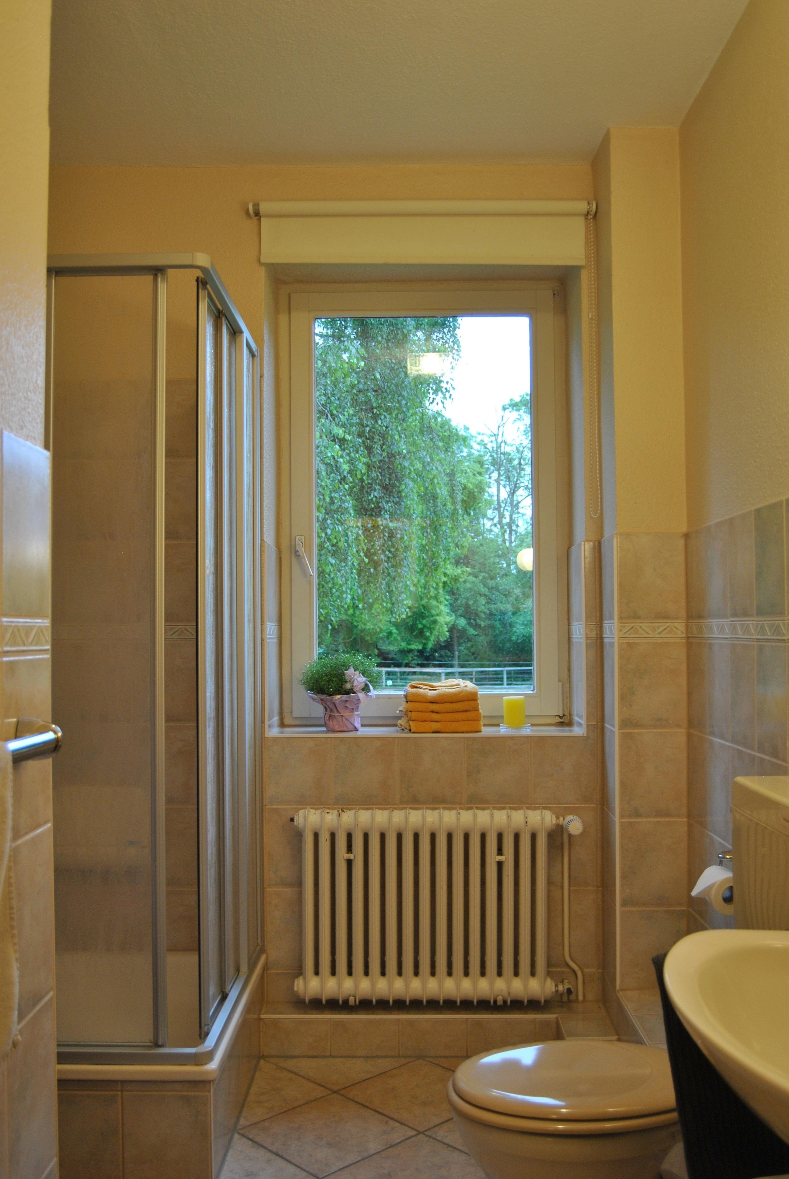 Das Duschbad ist mit einem großen Fenster ausgestattet und sorgt somit für viel Licht.