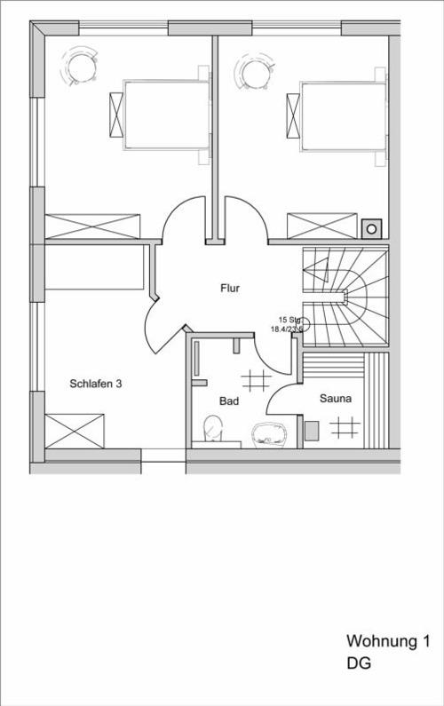 Zusätzlich liegt im obern Stockwerk das zweite Duschbad, mit anschließender wohnungseigener Sauna für entspannte Stunden.