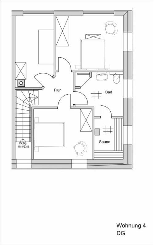Im Ober- als auch im Untergeschoss liegen die beiden Duschbäder. An das obere Bad schließt zudem die wohnungseigene Sauna für entspannte Stunden an.