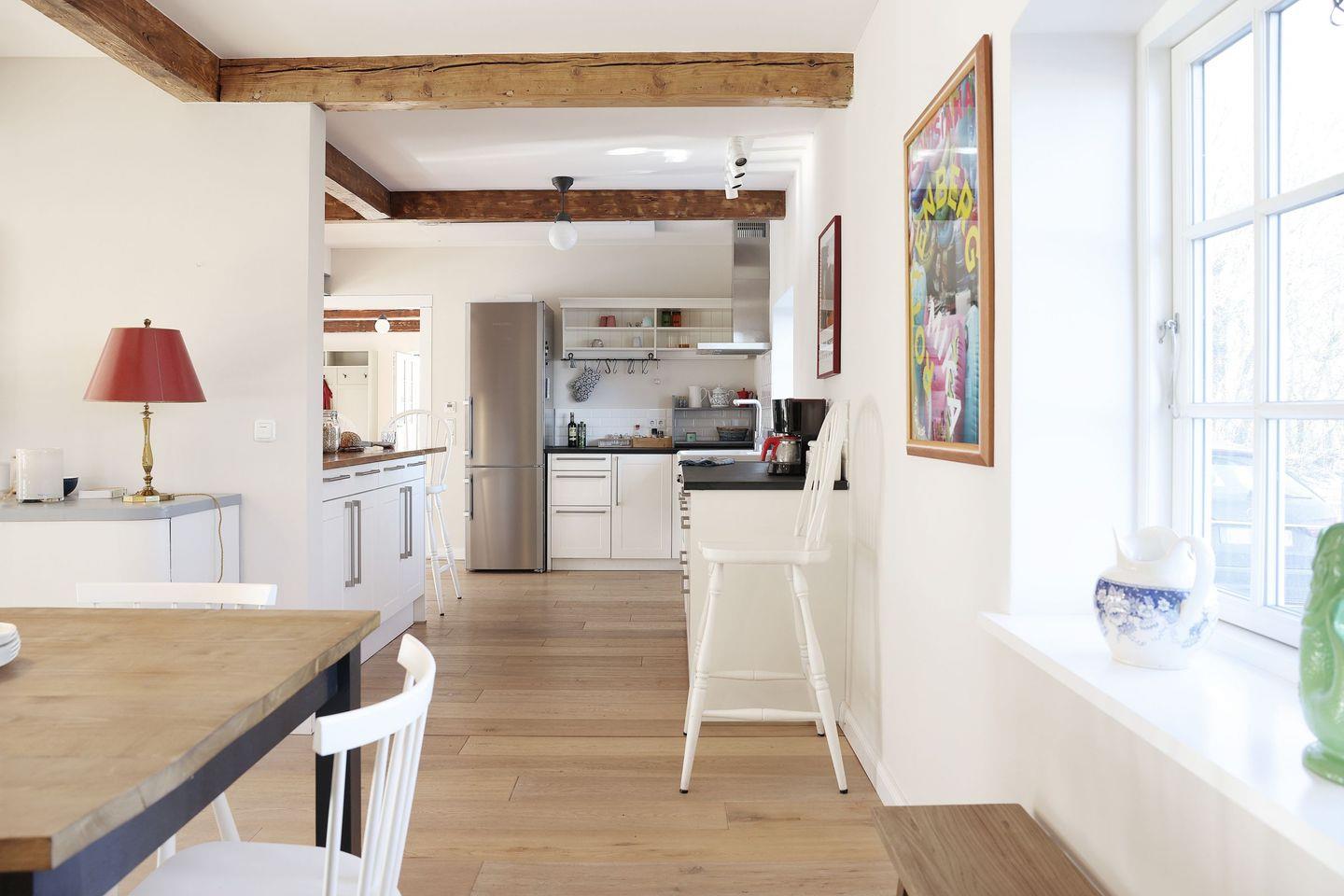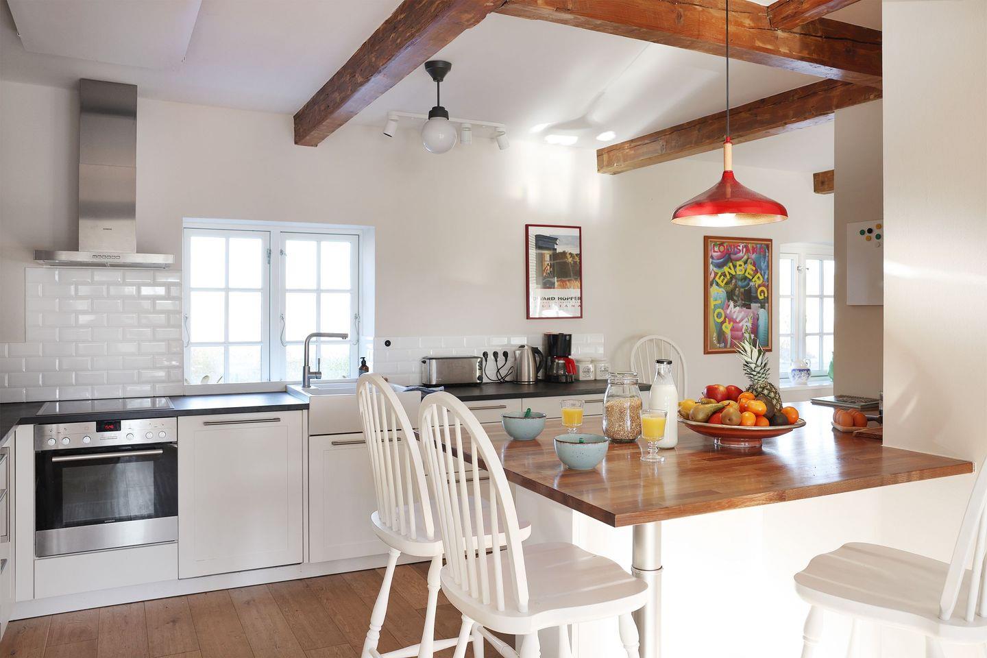 Das Haus bietet viel Platz und Rückzugsmöglichkeiten für 9 Personen. Die Wohnküche eignet sich ideal zum gemeinsamen Kochen. Der großzügige Esstisch bietet 10 Personen Platz – und den Raum für lange Spieleabende.