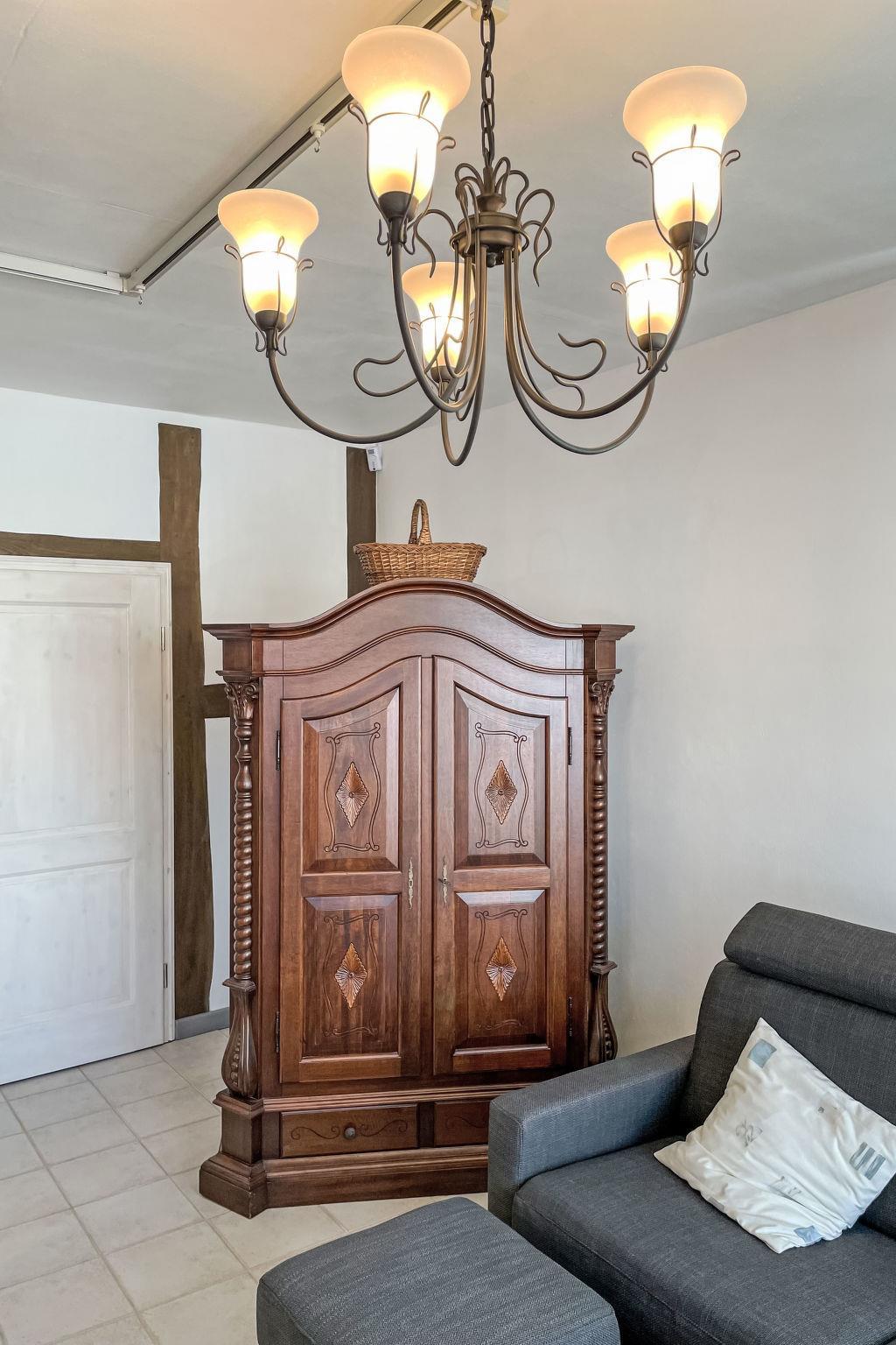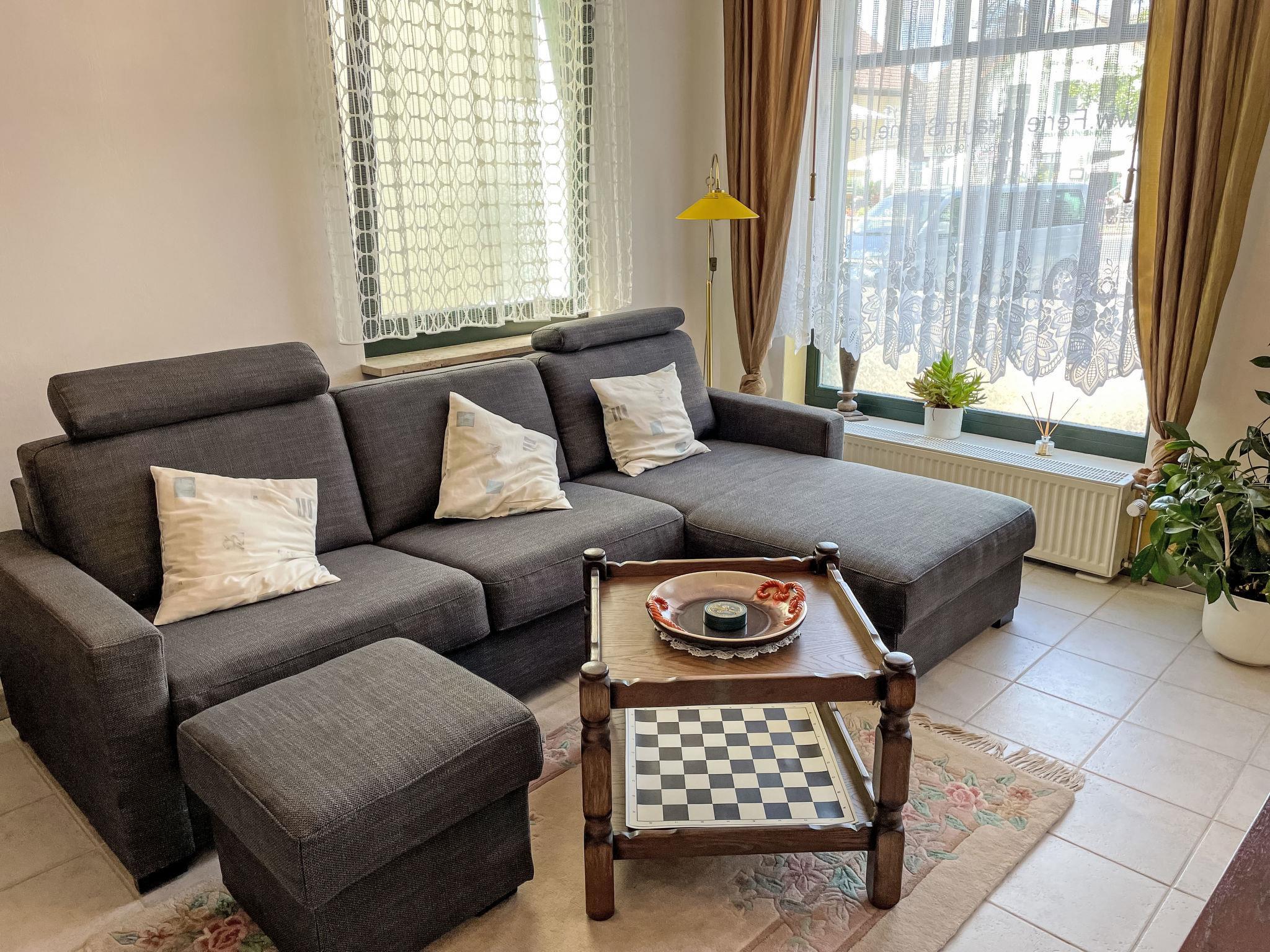 "Kaufmann", 1-Zimmer-Wohnung 45 m2, im Erdgeschoss. Modern und gemütlich eingerichtet: Wohn-/Schlafzimmer mit 1 Doppeldiwanbett. Offene Küche (Backofen, 4 Glaskeramikplatten, Toaster, Wasserkocher, elektrische Kaffeemaschine) mit Esstisch. Ausgang zur Terrasse. Dusche, sep. WC. Terrasse. Terrassenmöbel. Zur Verfügung: Internet (WLAN, gratis). Bitte beachten: Wohnung auf Parkplatzseite. Nichtraucher-Unterkunft. Maximal 1 Haustier/Hund erlaubt. Eigener Eingang, Rauchmelder, Feuerlöscher. Es gibt eine Parkmöglichkeit auf dem öffentlichen Parkplatz (ohne Gebühr) in 50m. Be-/Entladen an der Wohnung möglich.