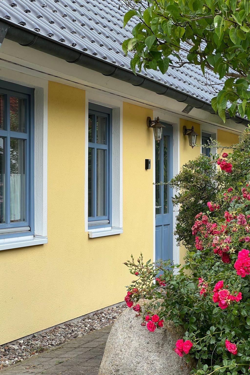Familien-Urlaub mit Hund in Mein Fleckchen Rügen, einer kleinen Ferienanlage von 4 Reihenhäusern in ruhiger Dorflage. Jedes Haus hat einen eigenen Eingang über die Terrassenseite und von da einen wunderschönen weiten Blick über das 13600 qm große Grundstück, das teils parkähnlich angelegt, teils Weidefläche ist. Die gemeinschaftliche Belegung von mehreren Häusern ist für Gruppen oder befreundeten Familien geeignet, die trotz gemeinsamen Urlaubs, einen eigenen Bereich bevorzugen. (z.B. 2 Häuser zum Preis von einem großen...) Weil die Landschaft um Neuenkirchen besonders idyllisch ist, wurden hier 9 Jahre lang alle Staffeln der beliebten ZDF-Serie "HALLO ROBBIE !" gedreht. Eingebettet zwischen traumhaften Naturschutzgebieten ist Neuenkirchen ein idealer Ausgangspunkt für Radtouren und Wanderungen durch die einzigartige Boddenlandschaft, ebenso wie zu den schönsten Sandstränden, die nach kurzer Fahrt mit dem Auto erreichbar sind. Auch die touristischen Highlights wie Weltkulturerbe- und Hansestadt Stralsund, der Jasmund mit den fantastischen Kreidefelsen, eine der größten Seebühnen Europas in Ralswieck und nicht zuletzt Tagesausflüge auf die Insel Hiddensee oder dem Kap Arkona sind in wenigen Minuten Fahrt zu erleben. Nur eines werden Sie nicht vorfinden in Neuenkirchen: Seebad-Trubel á la Binz und Co. Und dass in Neuenkirchen keine teure Kurtaxe zu entrichten ist, darf auch keinen stören ;-)