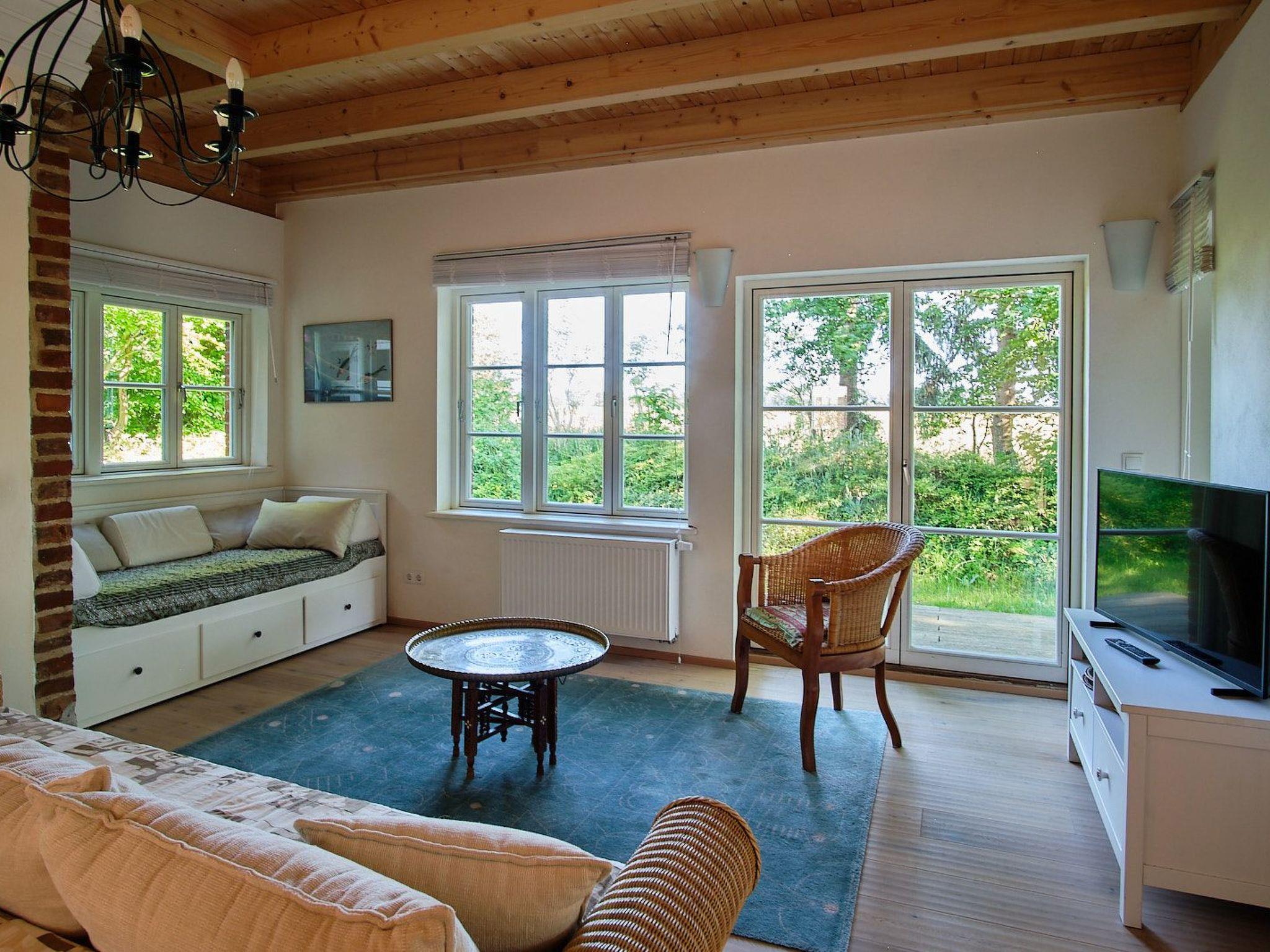 Freistehendes Gutshaus Vieregge mit großem Garten, Sauna und direktem Zugang zum Bodden, ideal für Natur- und Wassersportfreunde.