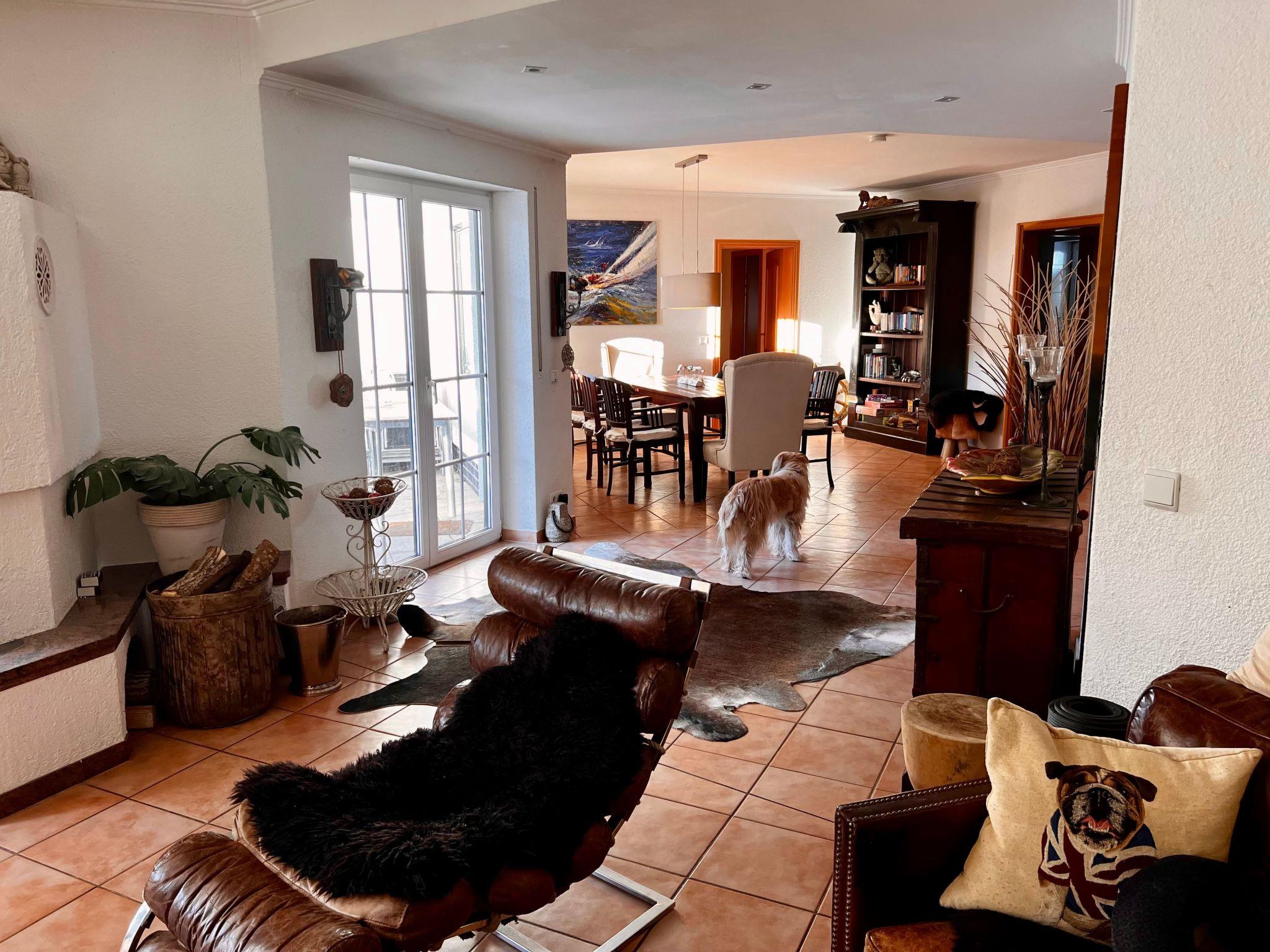 Wohn/Essbereich mit Kamin (70 m2), großen Flachbildschirm, Boseanlage mit DVD Player, Bücherregal mit div. Literatur, Gesellschaftsspiele, Leseecke etc.