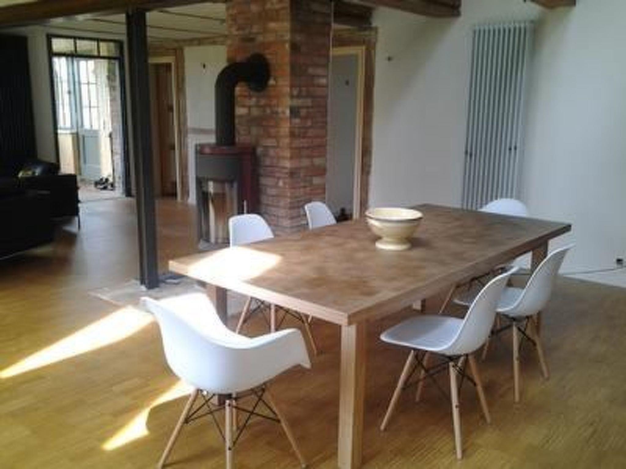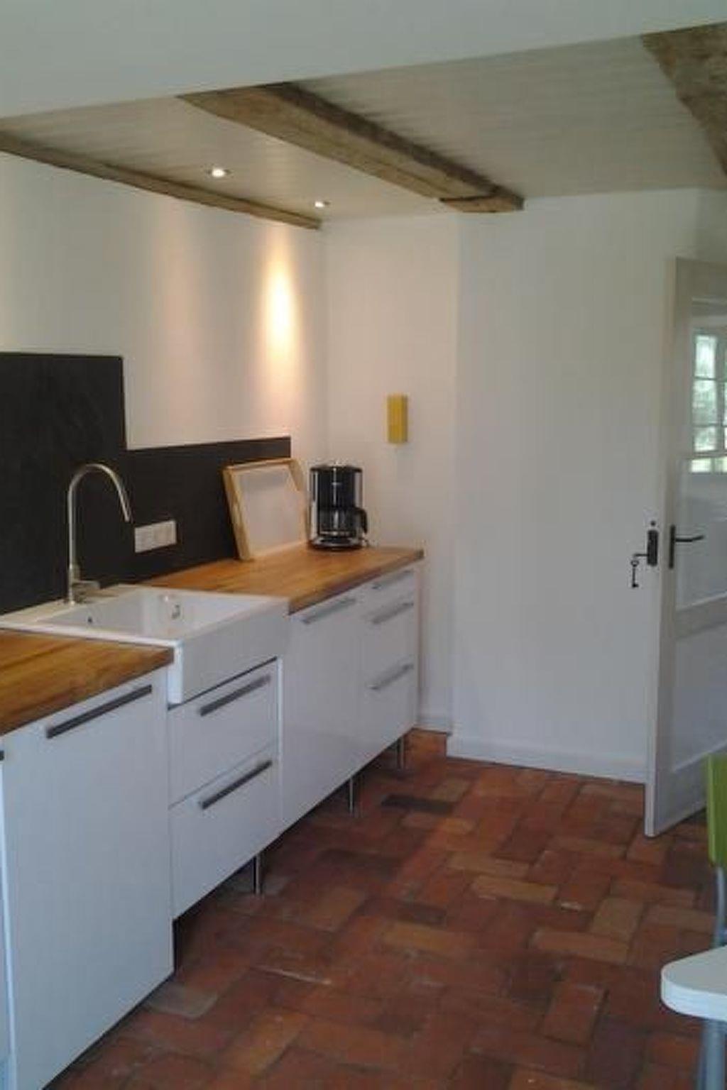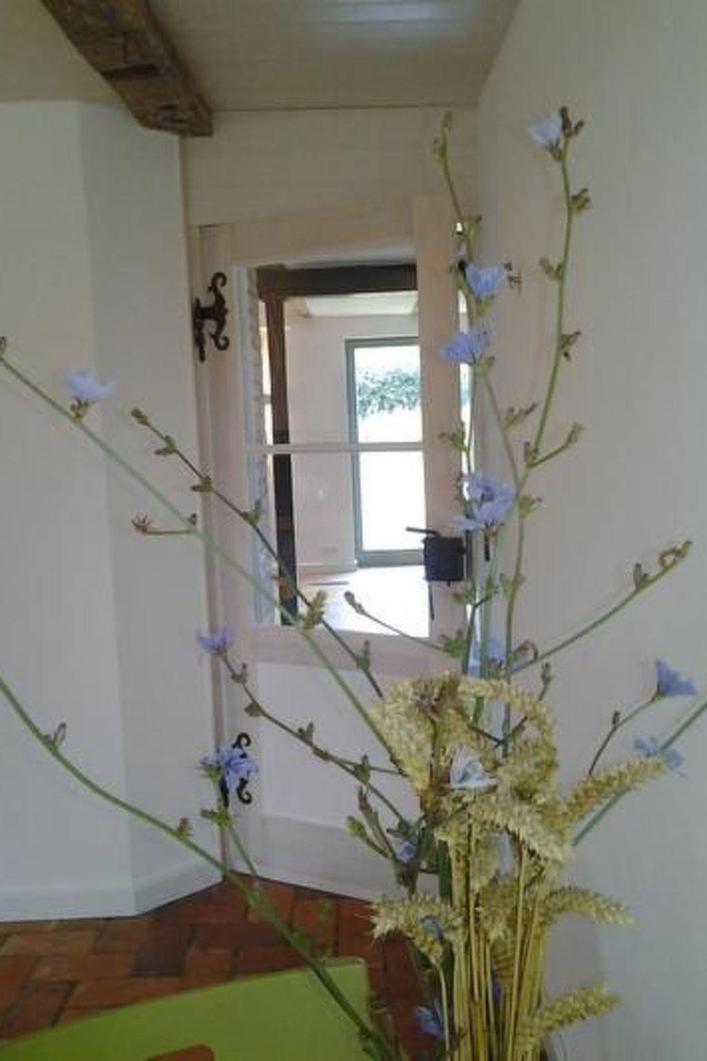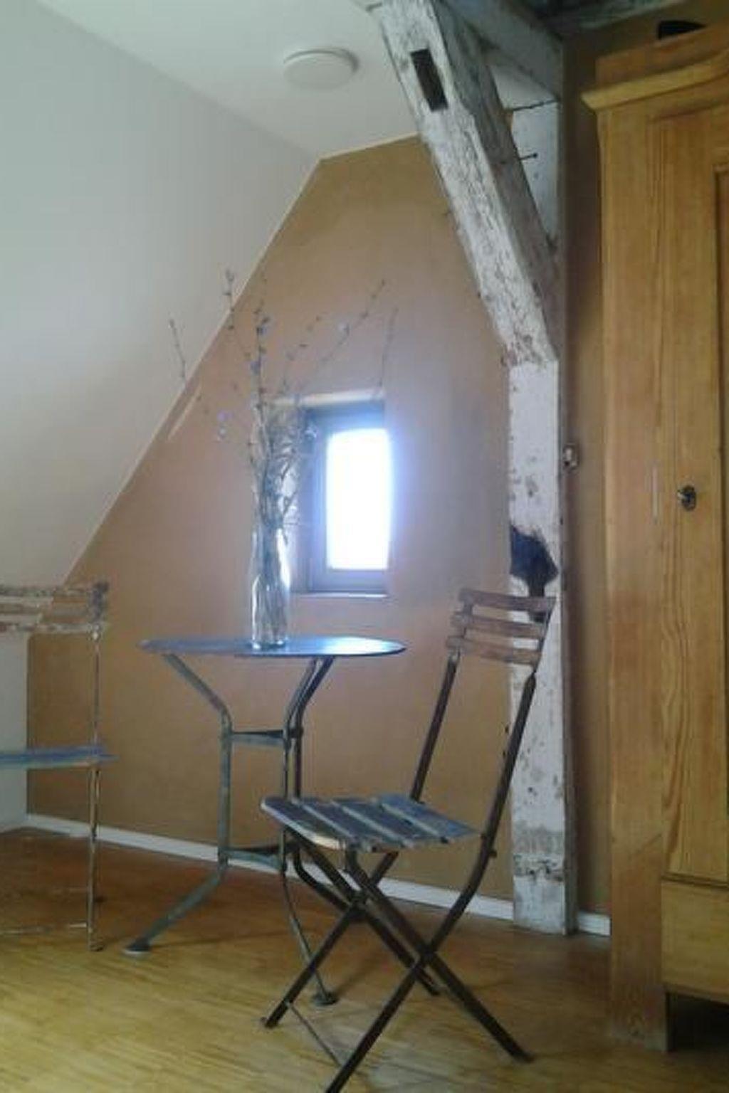 Im Innern erwartet Sie eine offene und lichtdurchflutete Raumgestaltung mit Holzparkettböden und einer Küche mit historischem Ziegelbelag. Eine Roheisenstahltreppe mit Bauholzbelag führt Sie auf die offene Galerie, die zu Lesestunden mit Blick auf weitläufige Feldlandschaften einlädt. Die Bäder sind mit Naturstein und Sanitärobjekten von Philippe Starck edel ausgestattet, während die offen liegenden Balken und die teilweise mit Lehmziegeln ausgefachten Wände den historischen Charme unterstreichen. Zusätzlichen Komfort bieten zwei Schlafzimmer und zwei Badezimmer, die gemütliche Rückzugsorte in diesem einzigartigen Ambiente darstellen.