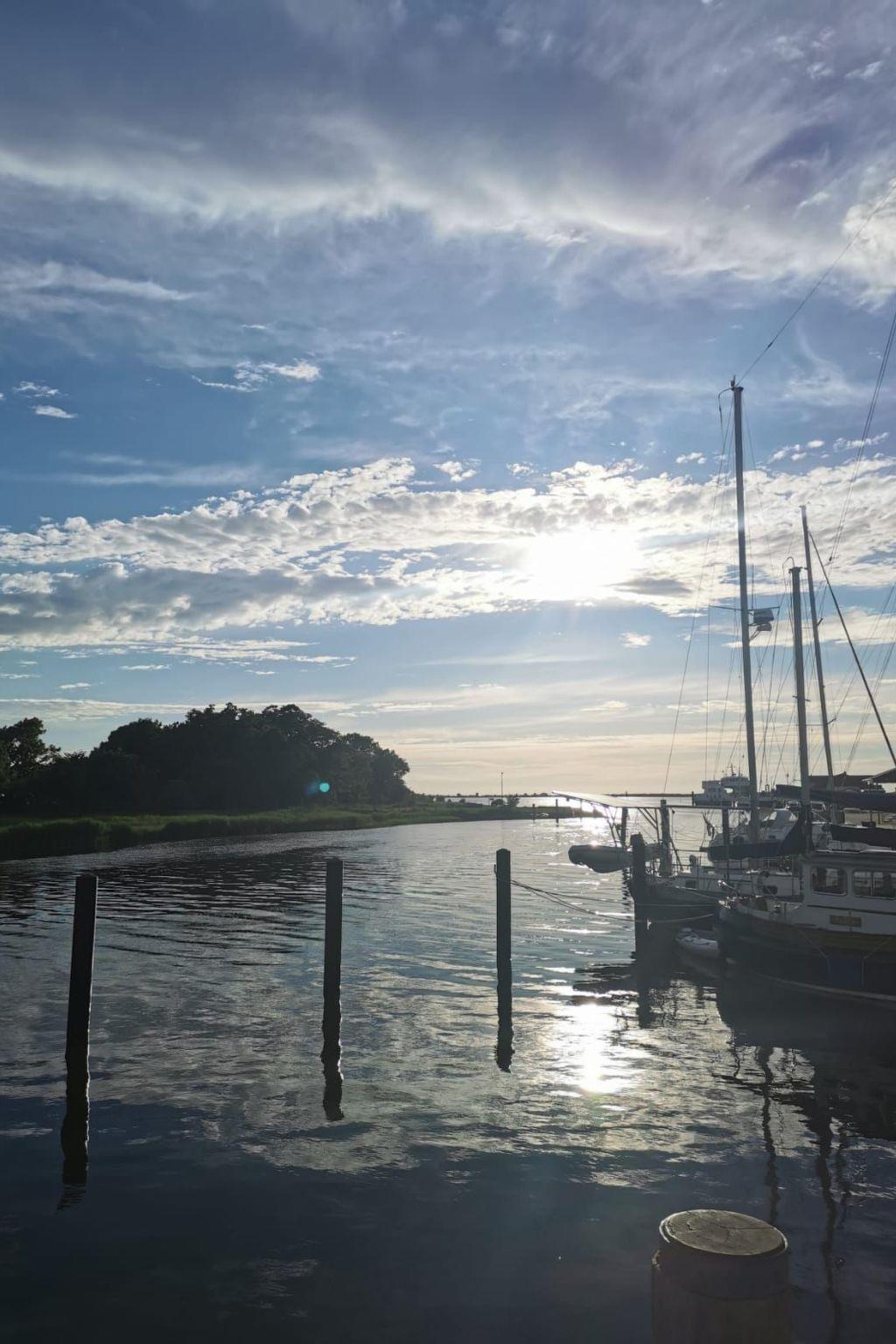 Im Außenbereich wartet eine Terrasse direkt hinter dem Haus auf Sie, die mit Grill- und Sitzmöglichkeiten ausgestattet ist – perfekt, um die milden Abende im Freien zu genießen. Ebenfalls zur Verfügung steht eine Tisch- und Bankkombination vor dem Haus, wo Sie bei einem Kaffee das geschäftige Treiben im nahen Hafen beobachten können. Der Garten zur gemeinschaftlichen Nutzung rundet das Angebot ab und bietet Raum für entspannte Stunden unter freiem Himmel.