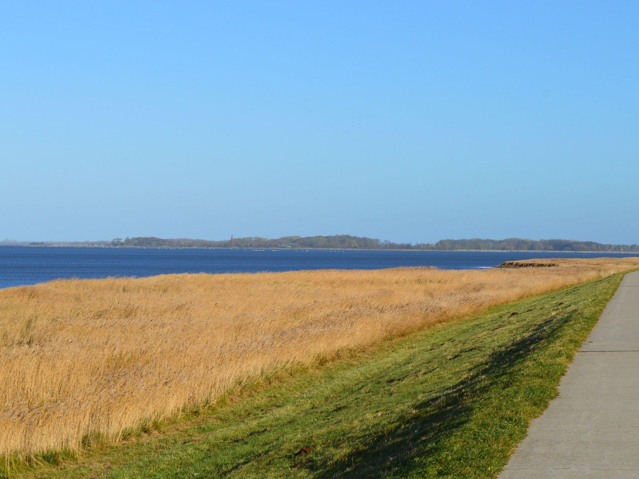 Die kleine Insel verfügt an der längsten Stelle über einen Durchmesser von etwa 8,5 Kilometern und kann daher ideal mit dem Fahrrad erkundet werden. Hierbei lädt der flache Deichradweg auf ebener Fahrbahn zu ausgedehnten Spazierfahrten ein. Eine Kite-Surfing Schule auf der anderen Inselseite bietet sportliche Abwechslung. Während Cafés, Gaststätten, Restaurants und Fischgastronomie 400 m entfernt liegen, erreichen Sie den Strand nach 500 Metern. Lebensmittelgeschäfte sind ca. 2 km entfernt. Die Insel ist über die Brücke mit dem Auto befahrbar, alternativ sind die Wassertaxis ein unvergessliches Fortbewegungsmittel.