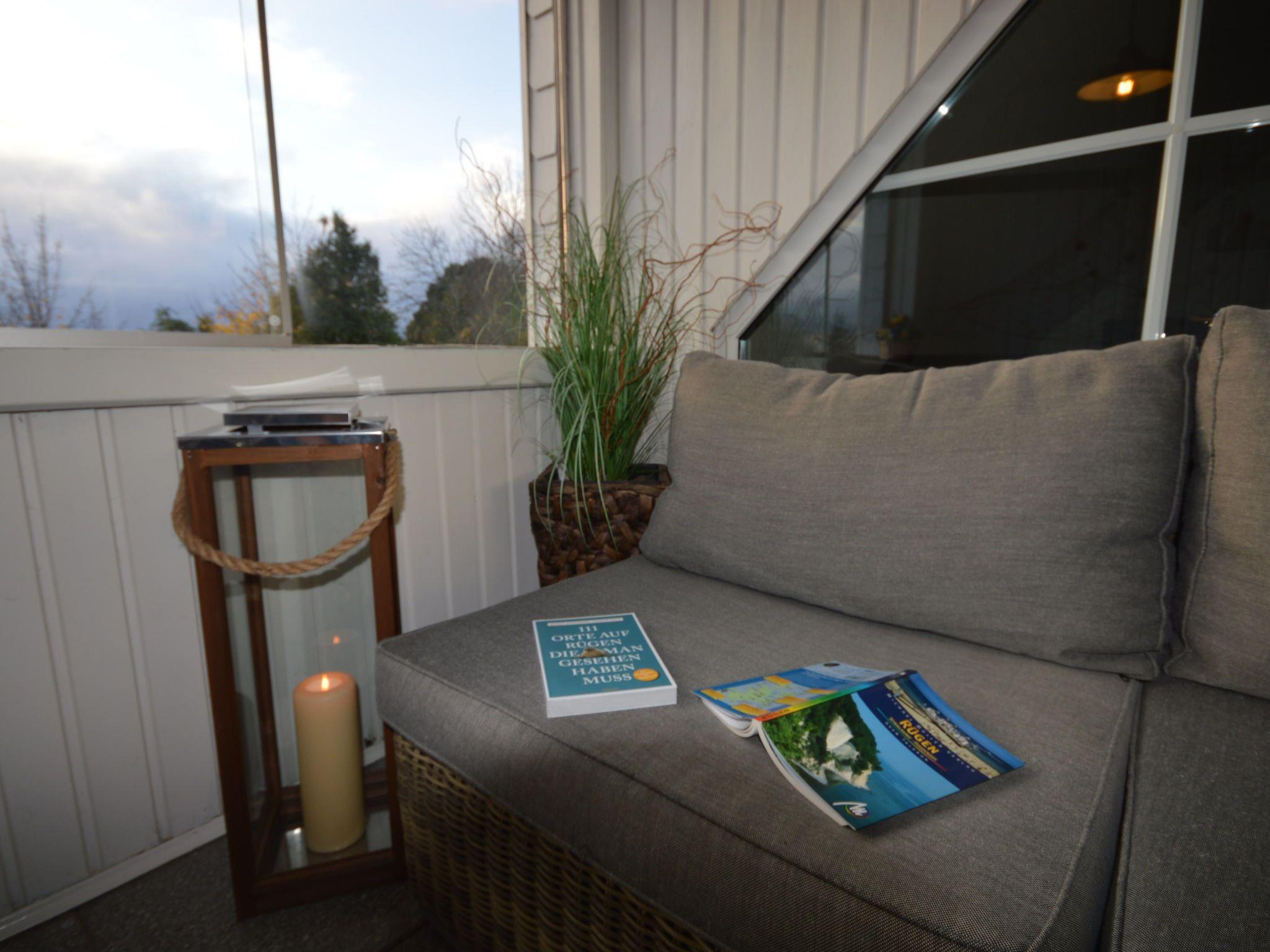 Die Loggia ist ein in den Wohnbereich integrierter Raum, der durch eine Balkontür betreten wird und rundum fast komplett verglast ist. Ein überdimensionales Außenfenster mit Schiebetüren lässt in diesem Raum ein balkonähnliches Ambiente entstehen, wozu die Gartenmöbel ebenfalls beitragen. Je nach Wind- und Wetterlage profitieren Sie somit von einem geschützten Sitzplatz mit einem weitreichenden Ausblick über die Insel. Ein Parkplatz ist auf dem Grundstück für Sie direkt am Haus erreichbar.