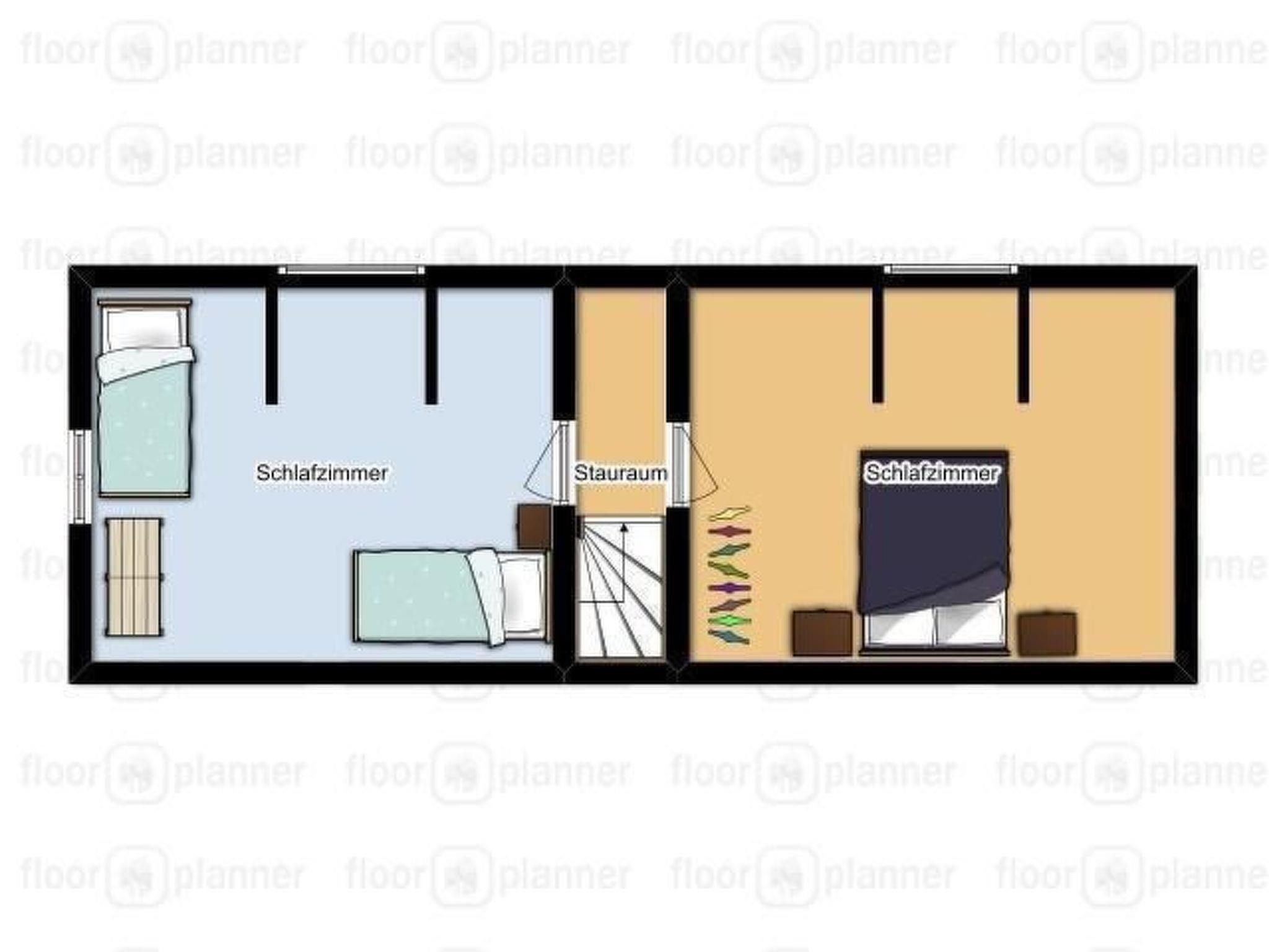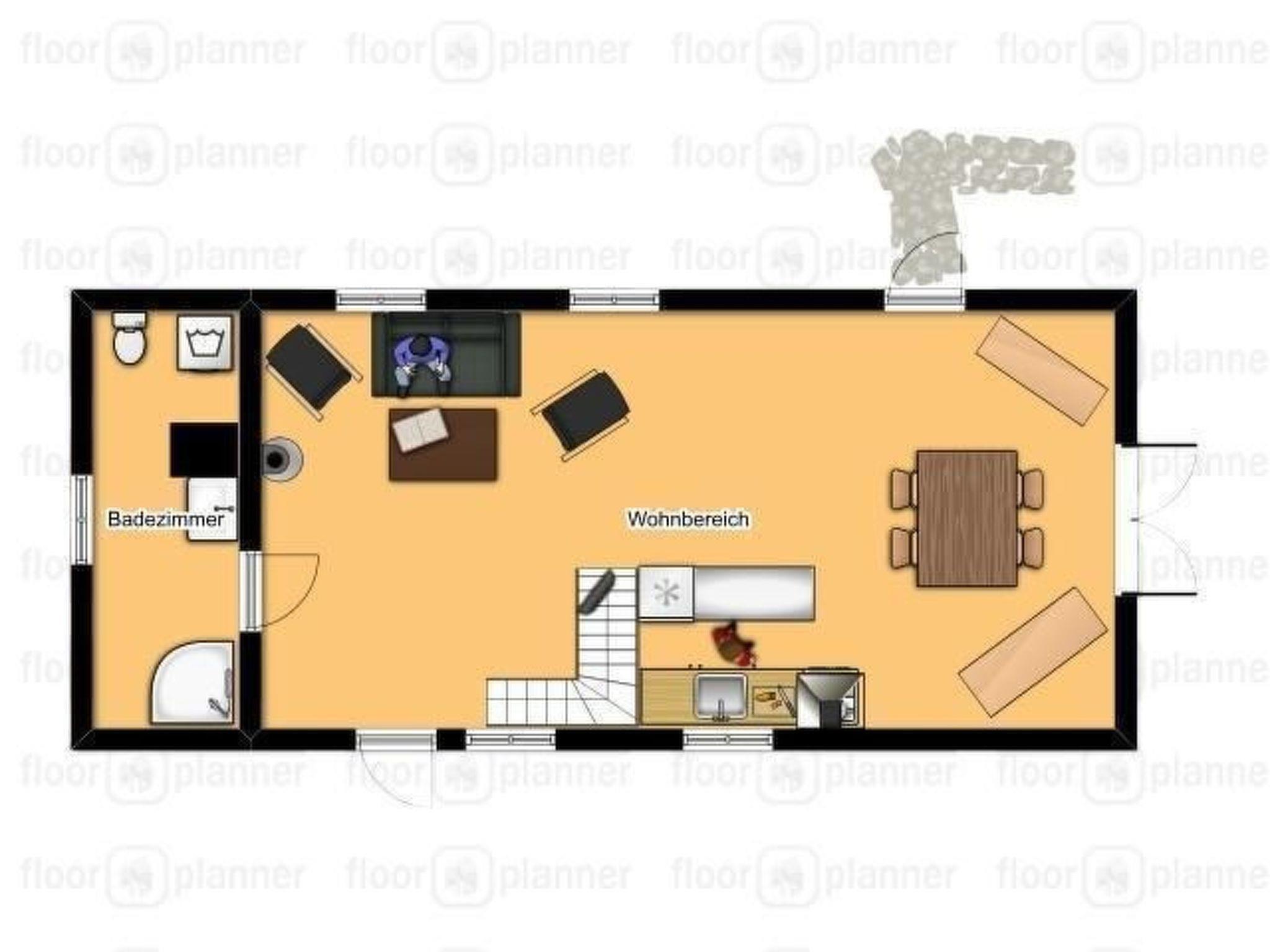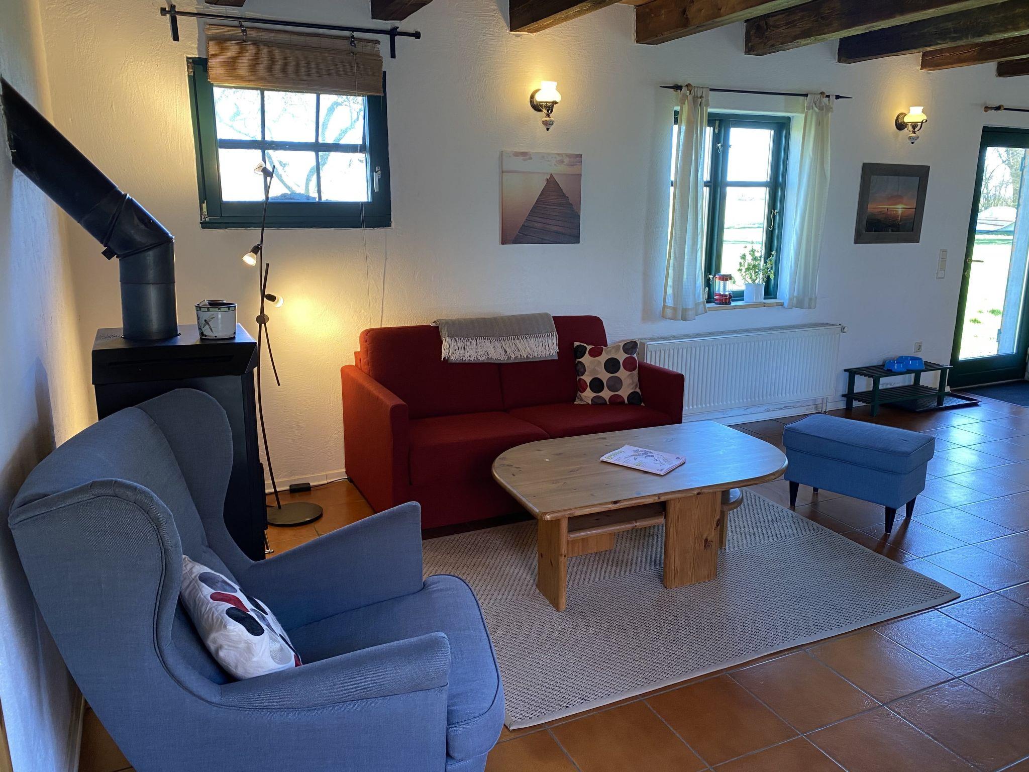Im Erdgeschoss befindet sich der große Wohn- und Essraum mit integrierter Küche mit Geschirrspüler, Backofen und Kühlschrank. Neben einer kuscheligen Couch, welche sich im Bedarfsfall in ein Doppelbett verwandeln lässt, finden Sie hier auch einen Kamin, SAT-TV und den großen Esstisch. Im Duschbad im Erdgeschoss befindet sich die Münz-Waschmaschine. Das Obergeschoss ist in zwei Schlafzimmer unterteilt. Im linken "Eltern-Schlafzimmer" befindet sich ein Doppelbett, im rechten "Kinder-Schlafzimmer" finden Sie zwei Einzelbetten.