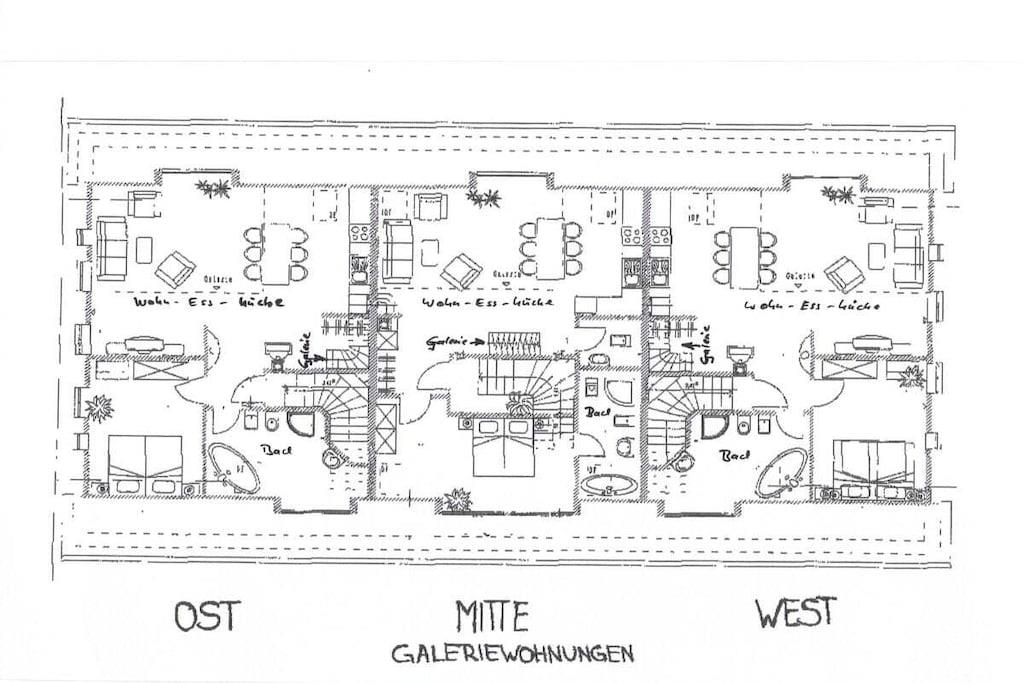 Die 93 qm Galeriewohnung erstreckt sich über zwei Etagen und besteht aus einem bis zum Dachgiebel offenen Wohn- und Essraum, mit freigelegten alten Holzbalken. Panorama-Kaminofen, elegante Sitzmöbel, SAT TV mit Radio. Großer Esstisch mit sechs Stühlen, sowie einen Küchenbereich mit Vollausstattung. Lichtdurchflutetes Bad mit hochwertigen Bad Elementen, Dusche, Dreiecksbadewanne, WC und Bidet Separates Schlafzimmer mit einem Doppelbett. Zusätzlicher Schlafbereich mit Einzelbetten oder Doppelbett auf der offenen Galerie, erreichbar über eine Raumspartreppe.