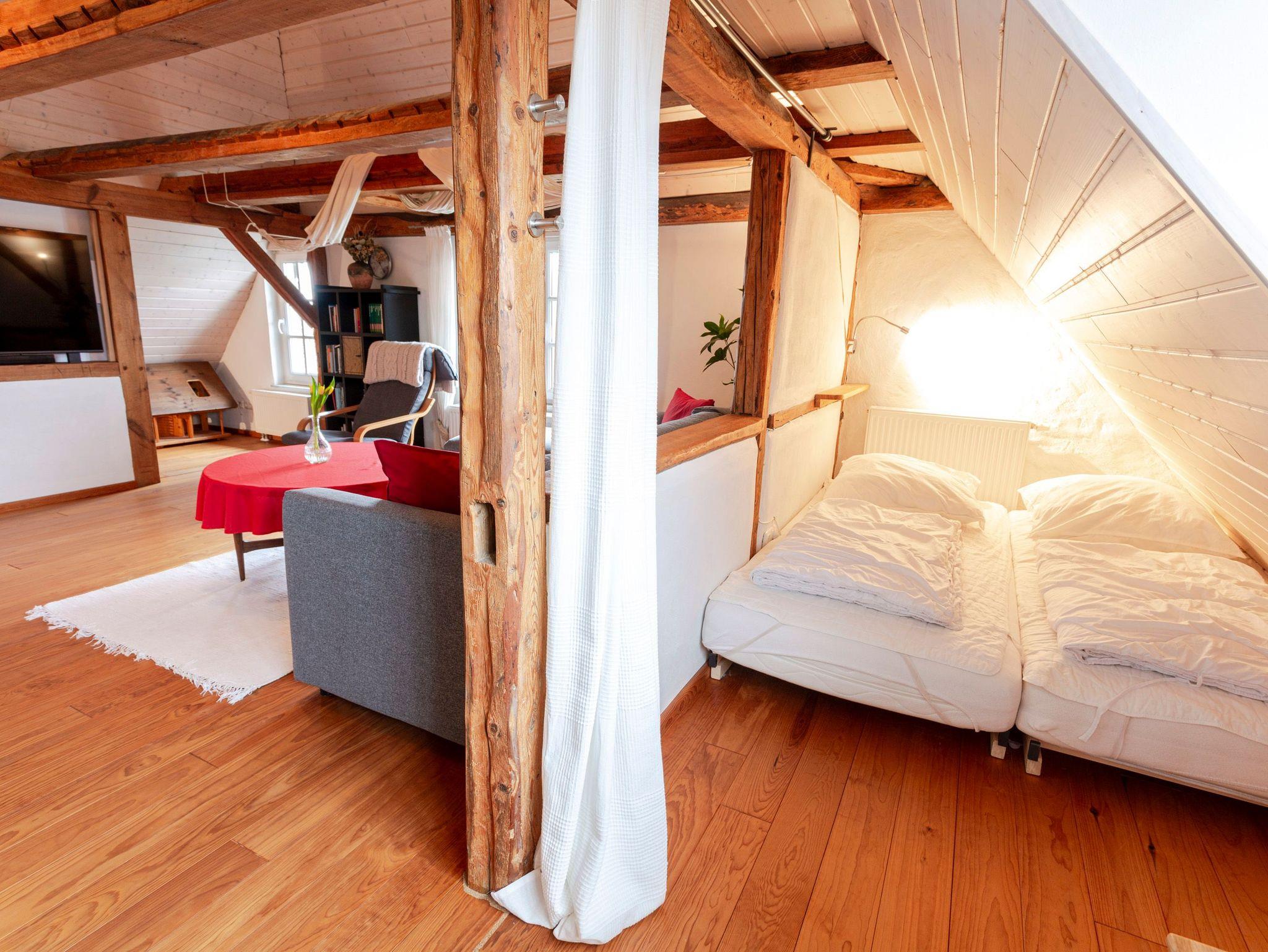 Die Ferienwohnungen im Haus Klein Kapelle befinden sich in Gingst auf der Insel Rügen und sind über einen eigenen separaten Eingang im Erdgeschoss erreichbar. Die Ferienwohnung 2 erstreckt sich über 2 Etagen und ist für bis zu 6 Personen geeignet. Sie bietet ein offenes Raumkonzept mit 3 Schlafnischen, großem Wohnbereich und voll ausgestatteter Küche. Die beiden Badezimmer sind mit Dusche und Badewanne ausgestattet. Das Haus Klein Kapelle ist über 200 Jahre alt und hat aufgrund der Balkenstruktur an wenigen Stellen im Dachgeschoss eine Stehhöhe von 1,80m. Die Ferienwohnung 3 im Erdgeschoss des Hauses ist für bis zu 4 Personen und ein Baby ausgelegt. Neben einem gemütlichen Wohnzimmer mit Kamin, einem separaten Schlafzimmer und einer voll ausgestatteten Küche steht ein Badezimmer mit Badewanne, WC und Waschmaschine zur Verfügung. Als Highlight kann hier die separate Sauna hinzugebucht werden.