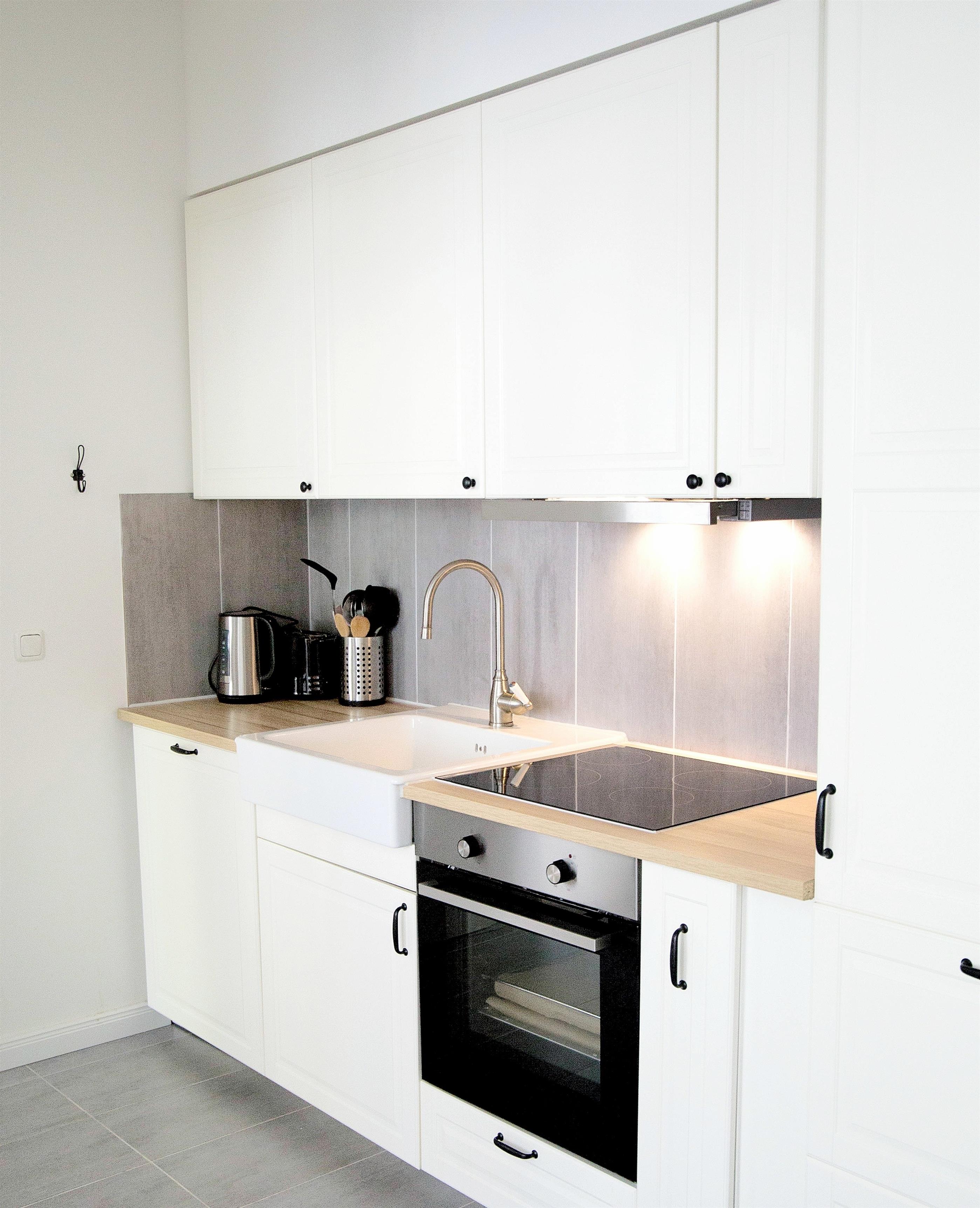 Die teilweise überdachte Terrasse liegt nur wenige Schritte vor dem Eingang und bietet Gartenmöbel, einen Grill und einen Strandkorb. Die offene Küche ist vollständig ausgestattet und integriert sich harmonisch in den Wohnbereich mit Flat TV und Bluray Player sowie einer gemütlichen Schlafcouch.