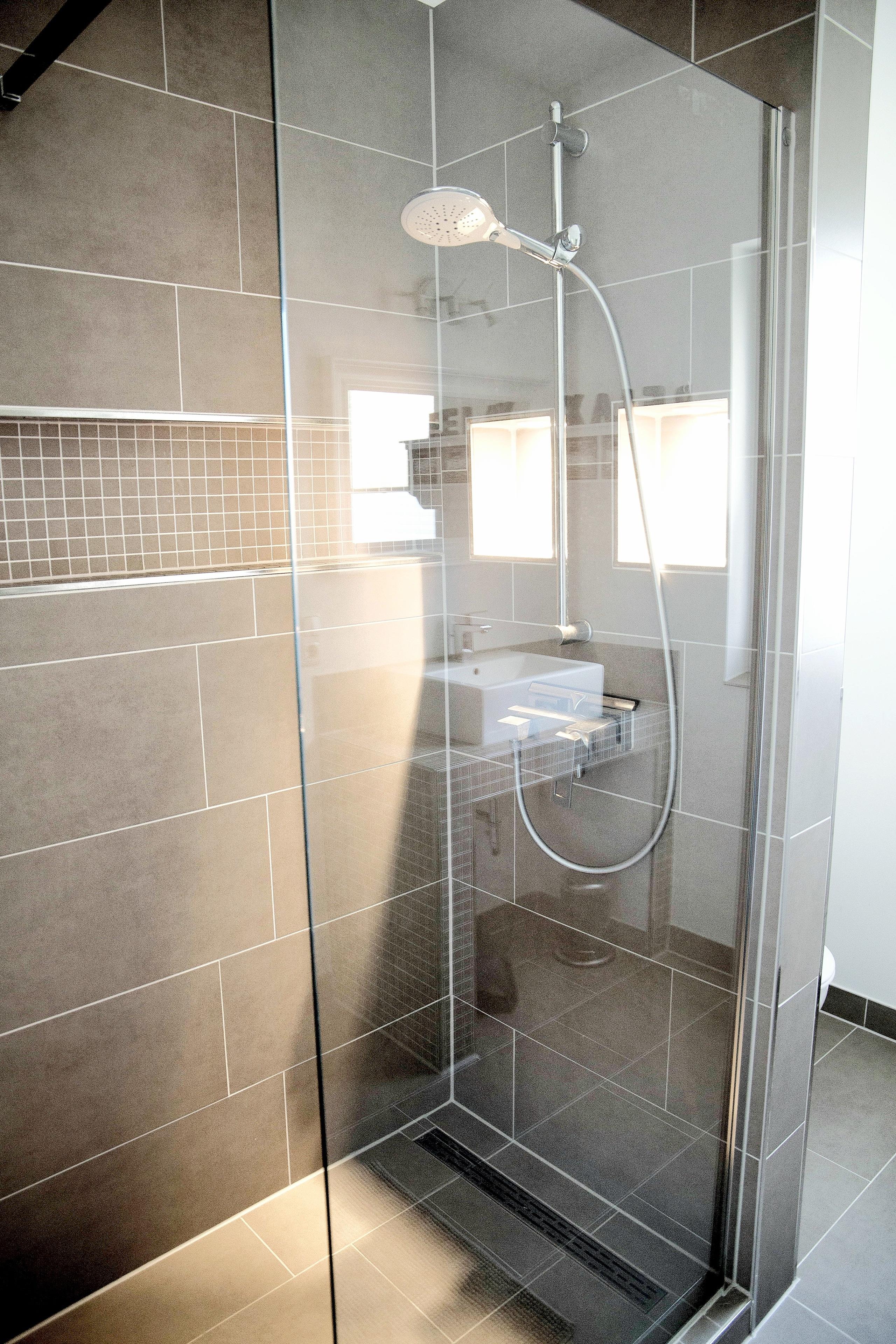 Das Badezimmer verfügt über eine bodentiefe, großzügige Walk-In-Dusche, eine Handtuchheizung und eine praktische Wasch-Trocknerkombination. Im geräumigen Schlafzimmer finden Sie einen Kleiderschrank, einen Spiegel, eine Kommode und einen weiteren Flat TV.