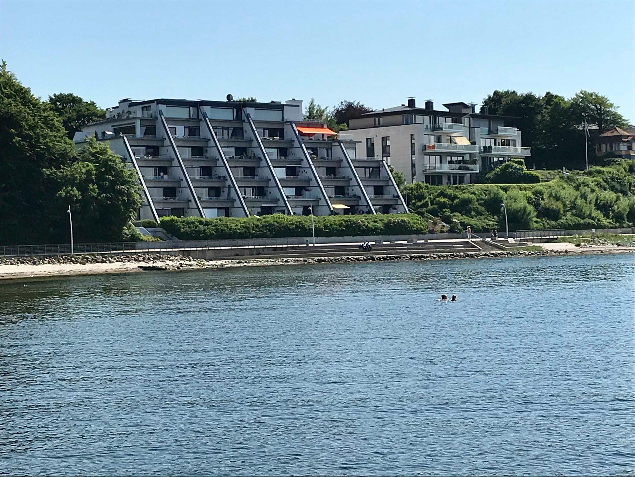 Das Feriendomizil liegt im Appartementhaus Belmar in der 1. Etage. Von dort aus genießt man einen einmaligen Blick auf die Ochseninseln und über die Flensburger Förde bis nach Dänemark.