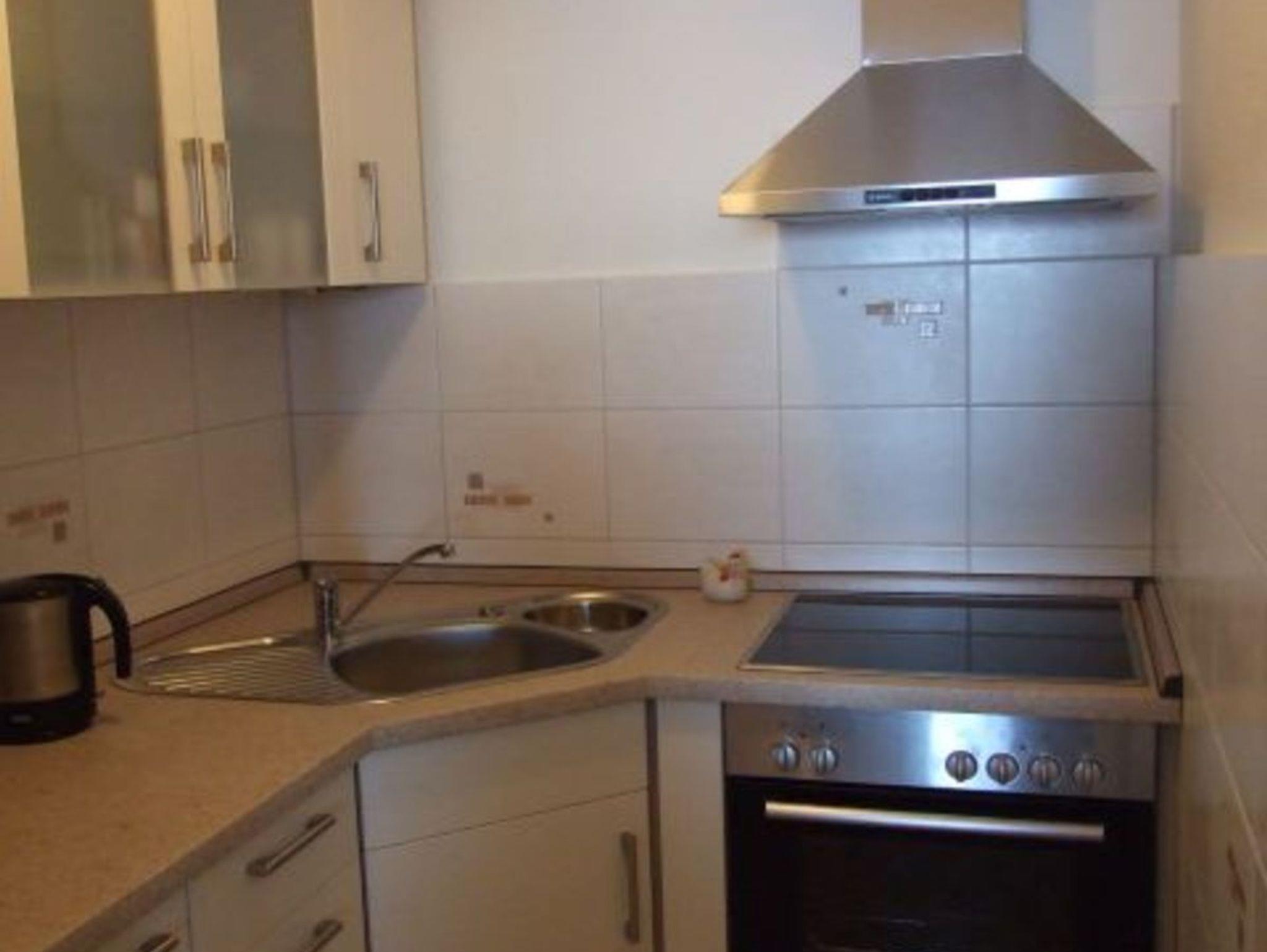 • Küche mit Kaffeemaschine, Wasserkocher, Mikrowelle, Backofen, Cerankochfeld, Toaster, Eierkocher, Mixer