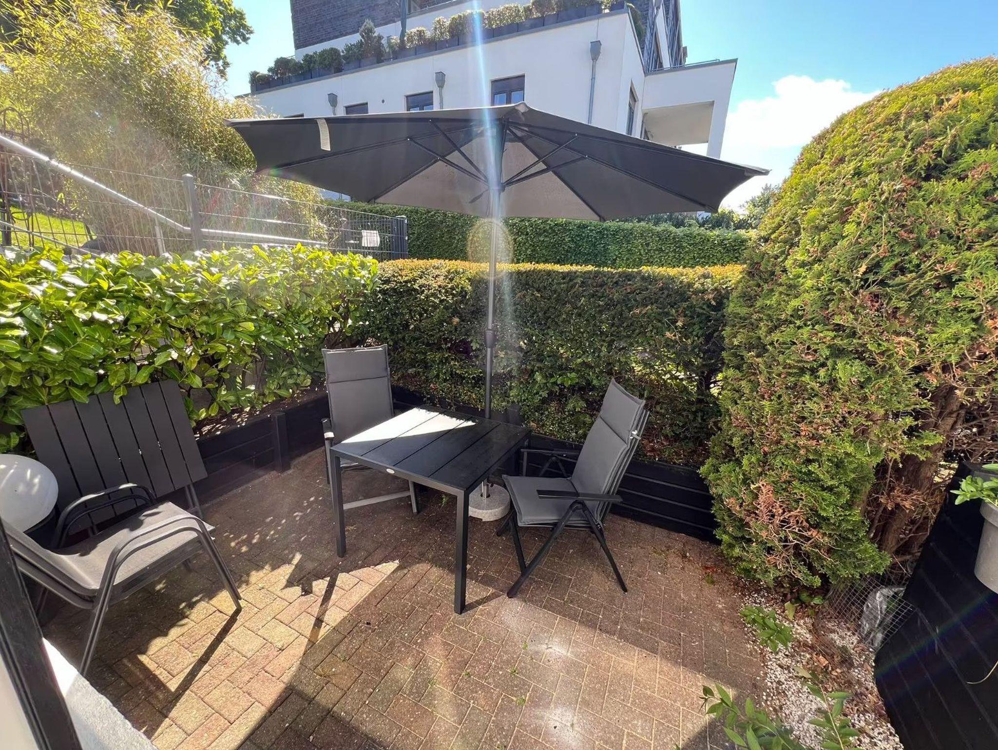 Moderne Ferienwohnung mit Fördeblick und sonniger Terrasse in Glücksburg Meierwik, ideal für entspannte Urlaubstage an der Ostsee.