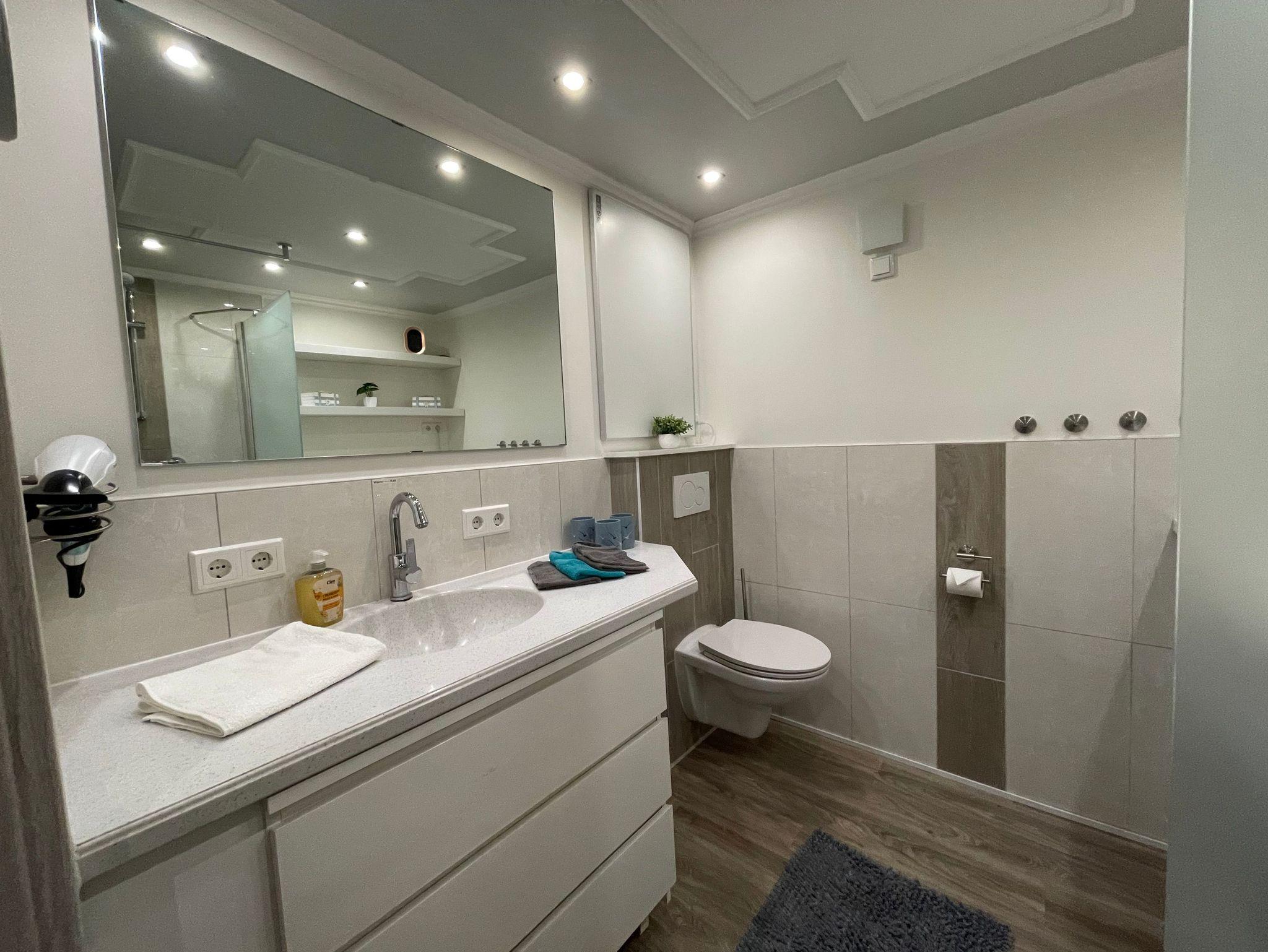 Das Badezimmer ist großzügig gestaltet und bietet: