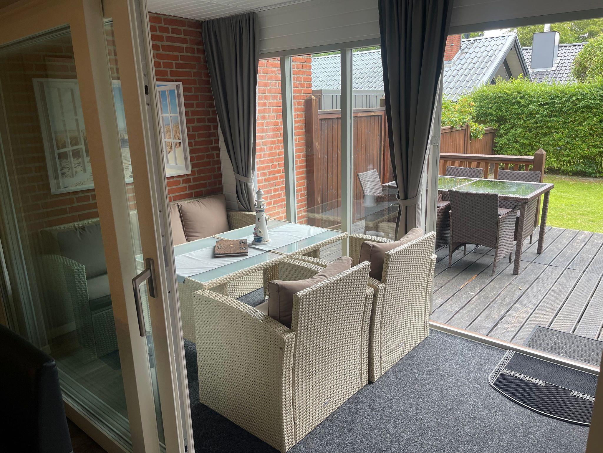 Die Ferienwohnung verfügt über zwei Terrassen vorne und hinten.
