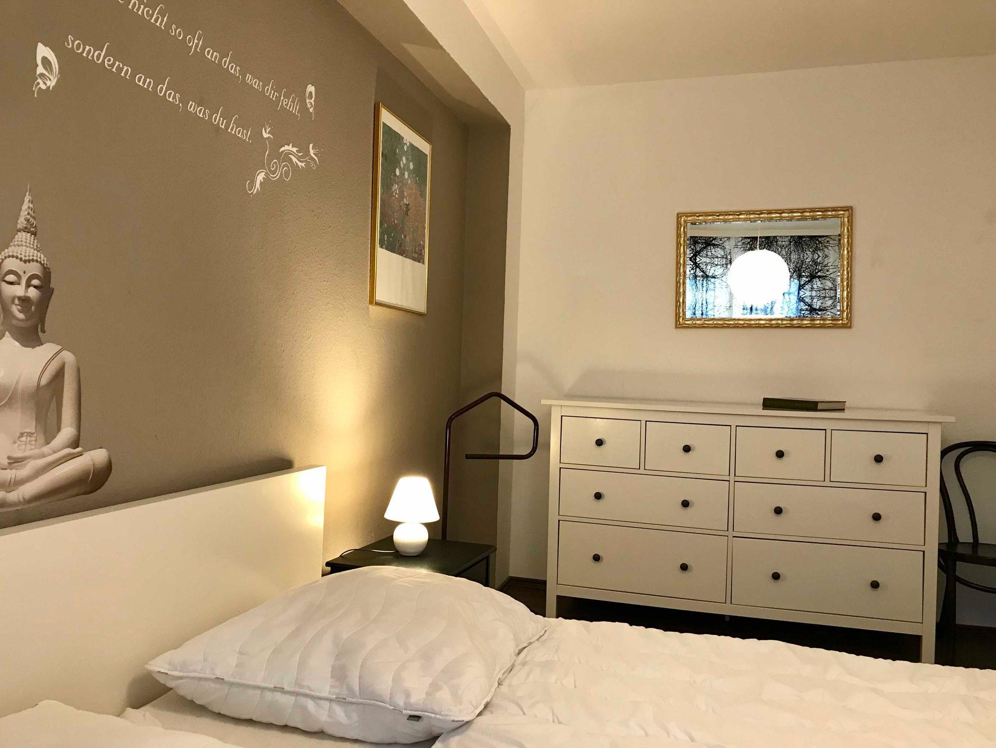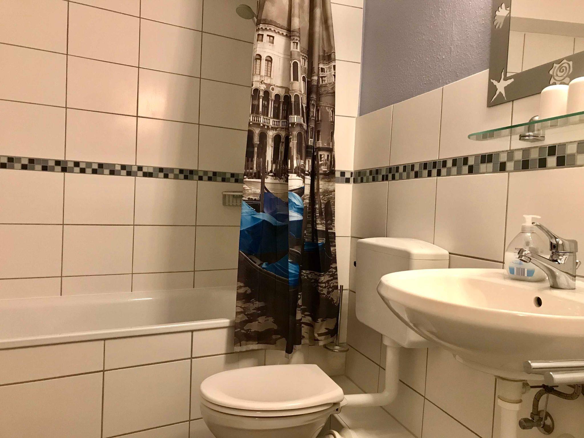 Sie ist 43 qm groß und befindet sich im 4.Stock eines Mehrfamilienhauses. Die Wohnung besteht aus einem Wohn-/ Esszimmer mit Balkon, einer separaten Küche, einem Schlafzimmer mit Doppelbett und einem Bad mit Wannendusche. PKW-Stellplatz, Fahrradabstellraum und Waschmöglichkeiten im Gemeinschaftskeller stehen zur Verfügung, WLAN ist kostenfrei vorhanden.