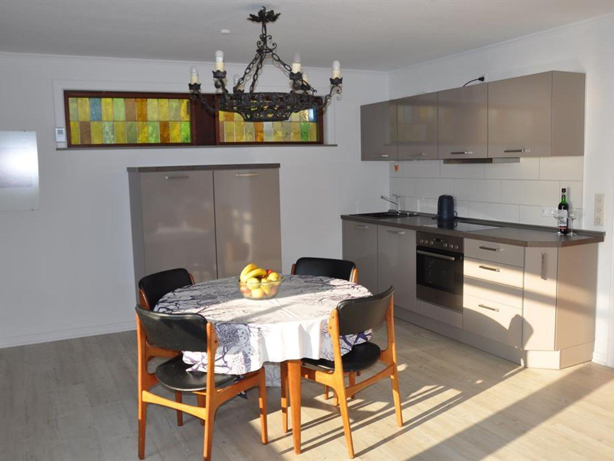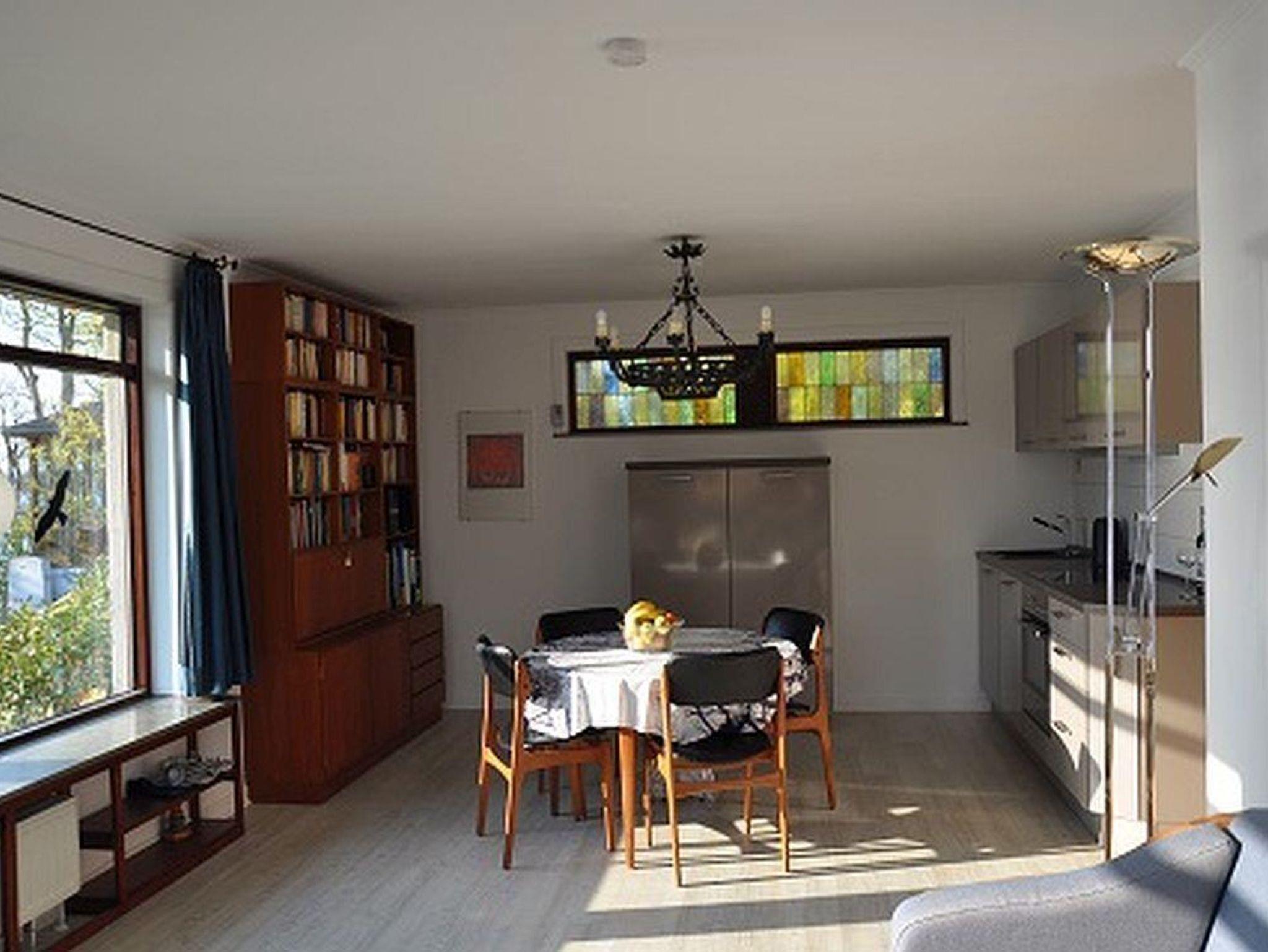 Die ruhig gelegene Ferienwohnung ist die größere (70 qm) von zwei Wohnungen (separate Eingänge) in einem frei stehenden eingeschössigen Haus auf einem 1200 qm großen Grundstück. Vom Wohnzimmer und der Terrasse kann man auf den Yachthafen und über die Flensburger Förde bis nach Dänemark blicken. Der große Garten mit Liegewiese fällt über einen Abhang direkt zum Strand ab.
